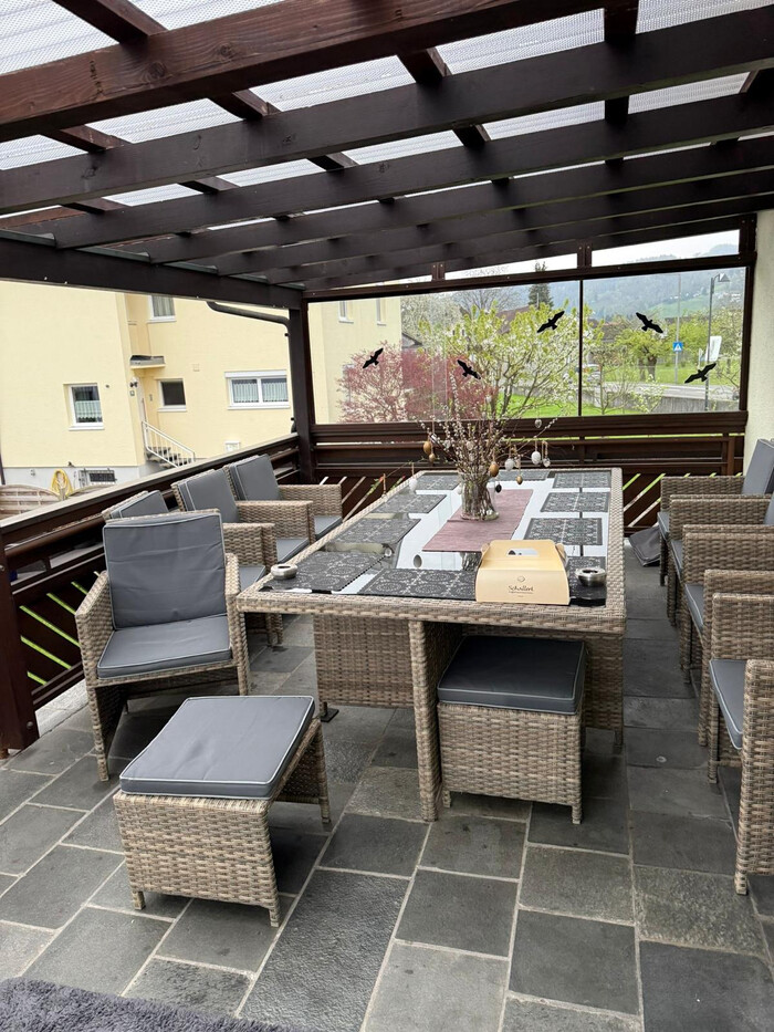 Die große, überdachte Terrasse (24m²) lädt zum Genießen im Freien ein.