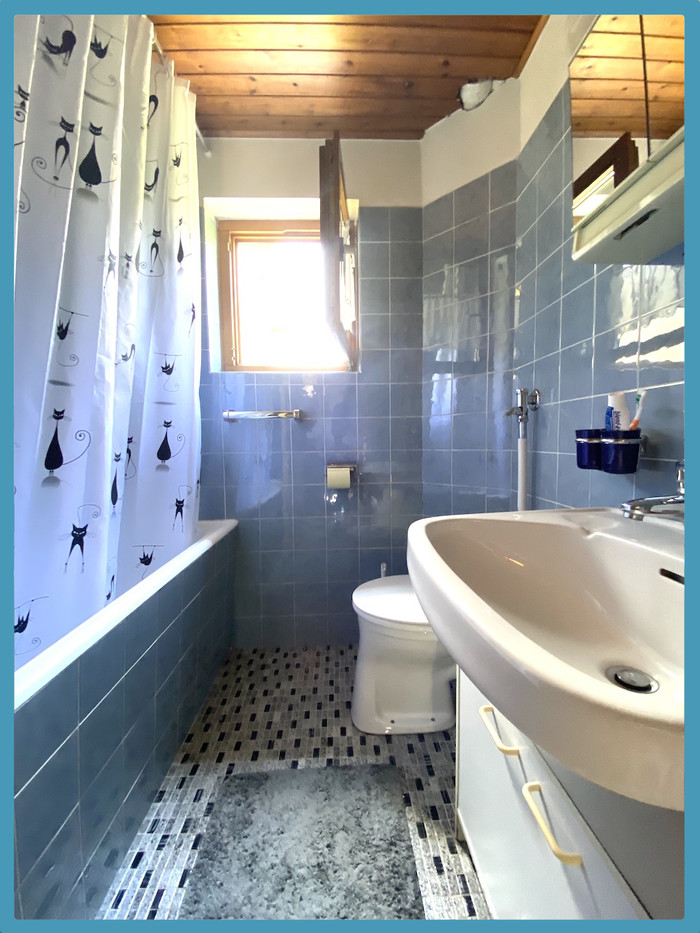 - Badezimmer mit Badewanne und WC