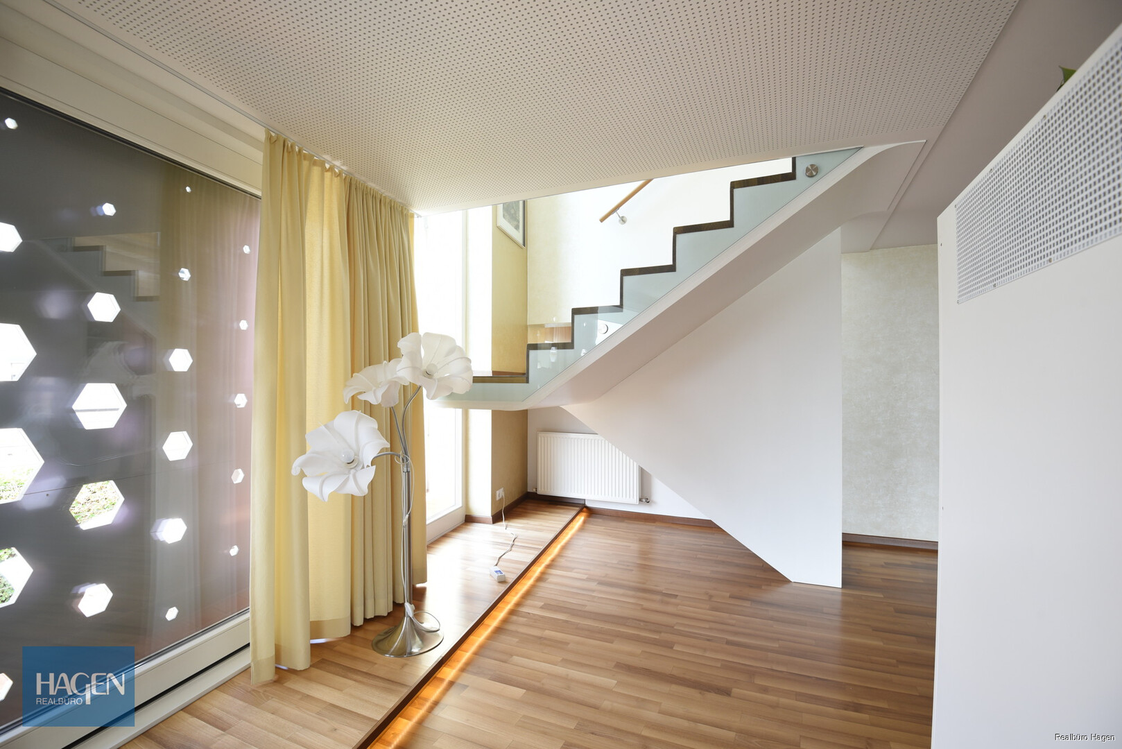 Die gesamt Nutzfläche von ca. 387,5 m² ist auf das Erdgeschoss, das Obergeschoss und das Dachgeschoss aufgeteilt. Alle Stockwerke sind mit dem Aufzug zu erreichen.