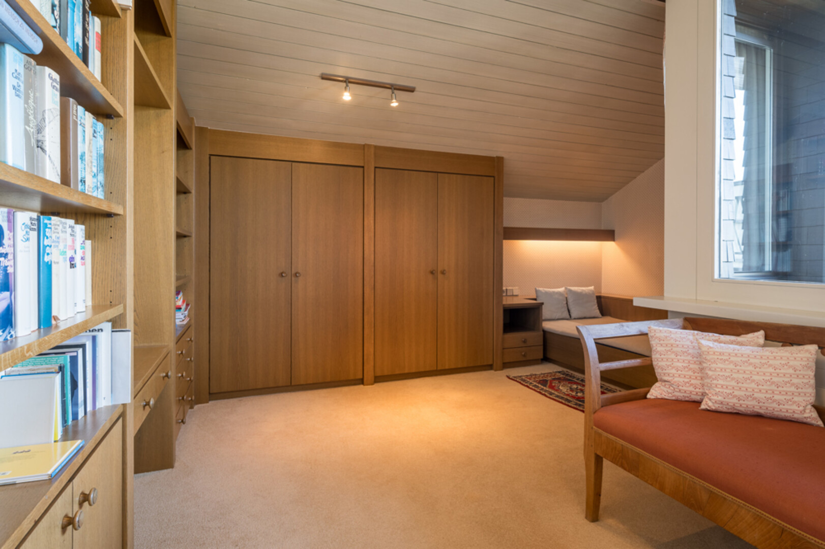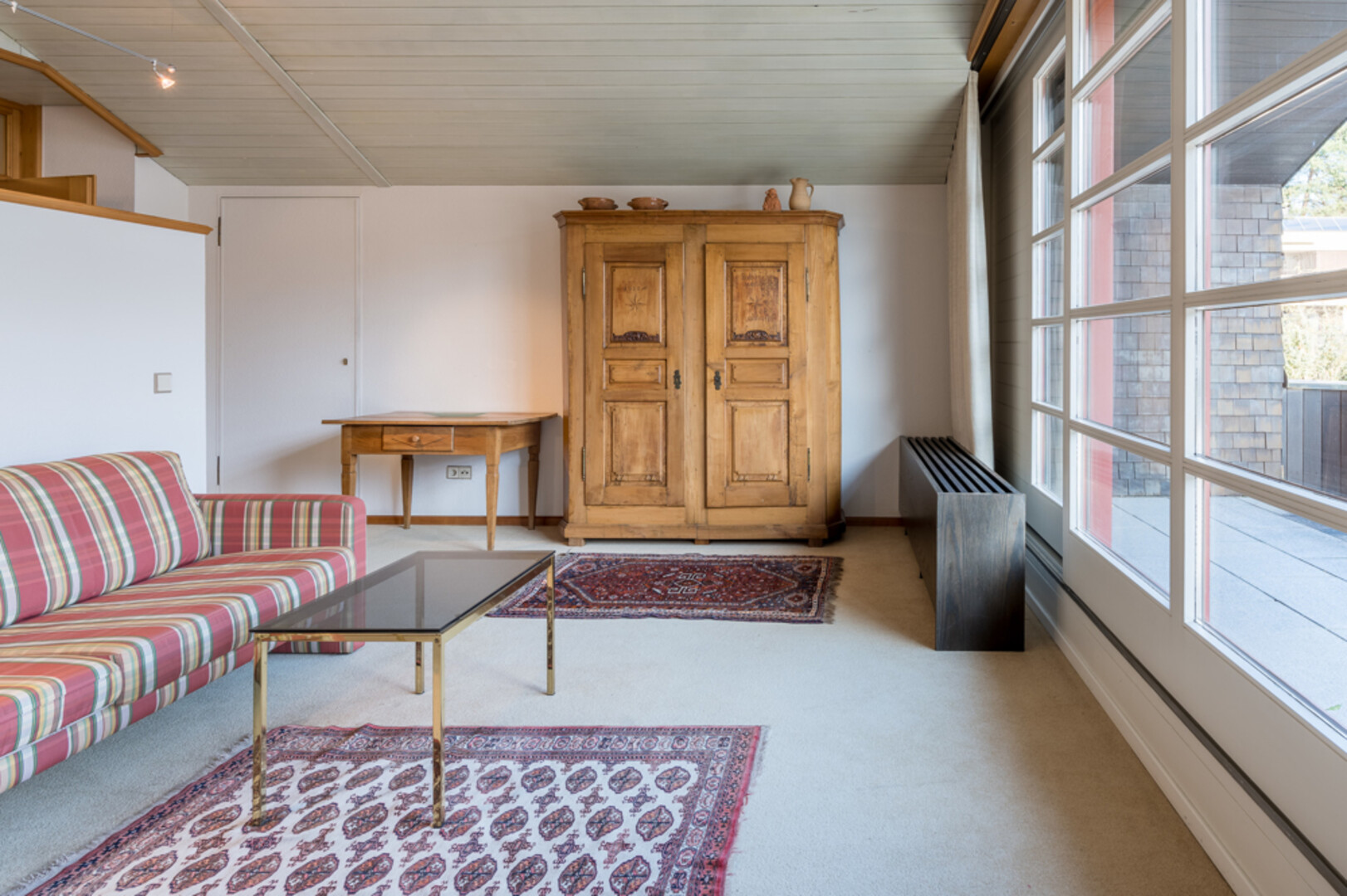 Dementsprechend verfügt das Haus über einen großzügigen Garten, Terrassen usw. und sind auch die Raumhöhen im oberen Bereich: 2,60 im Erdgeschoss, 2,40 bis 3,80 m im Obergeschoss. Das Haus besteht aus Erd- und Obergeschoss und ist teilunterkellert.