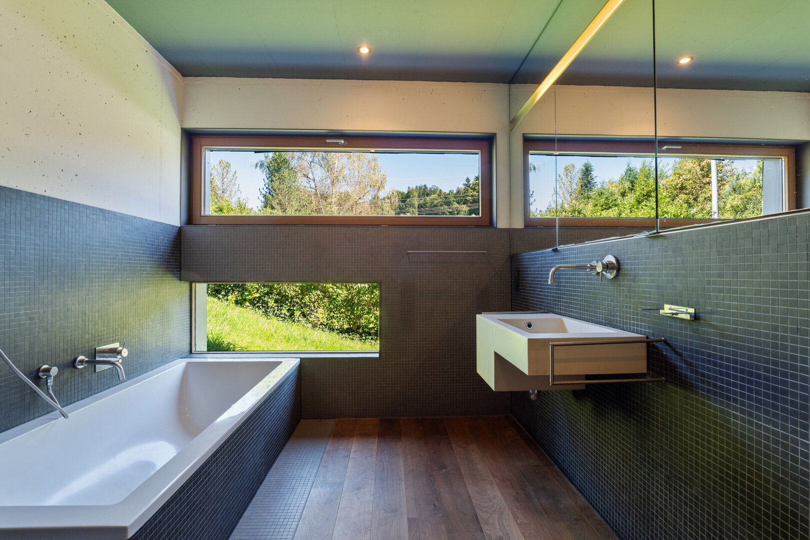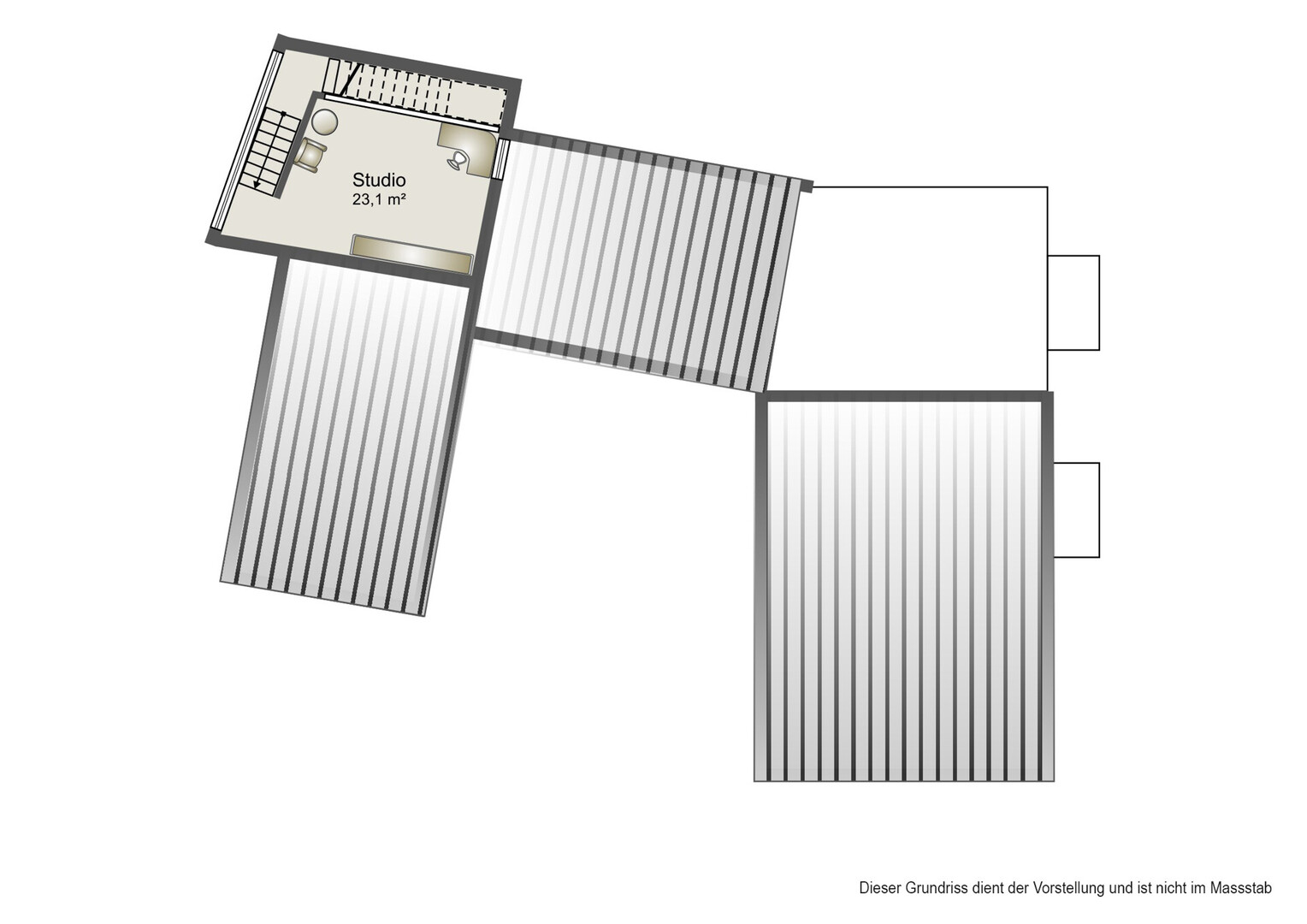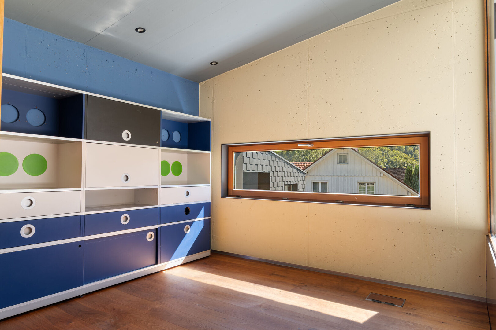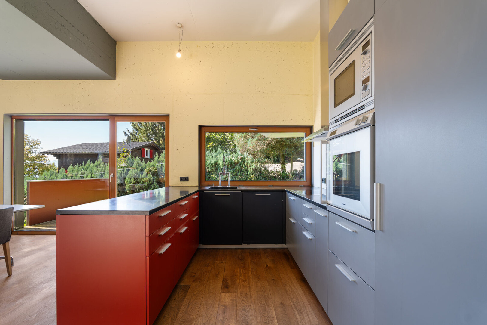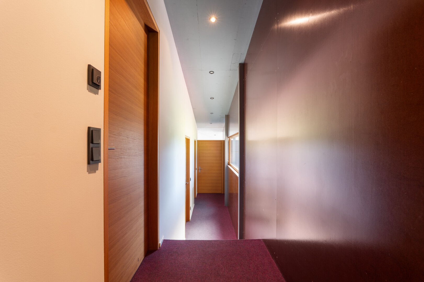 Im Dachgeschoss erwartet Sie ein verglastes Studio mit Panoramablick über das Rheintal bis zu den Schweizer Alpen – ein exklusiver Rückzugsort zum Arbeiten, Lesen oder Entspannen.