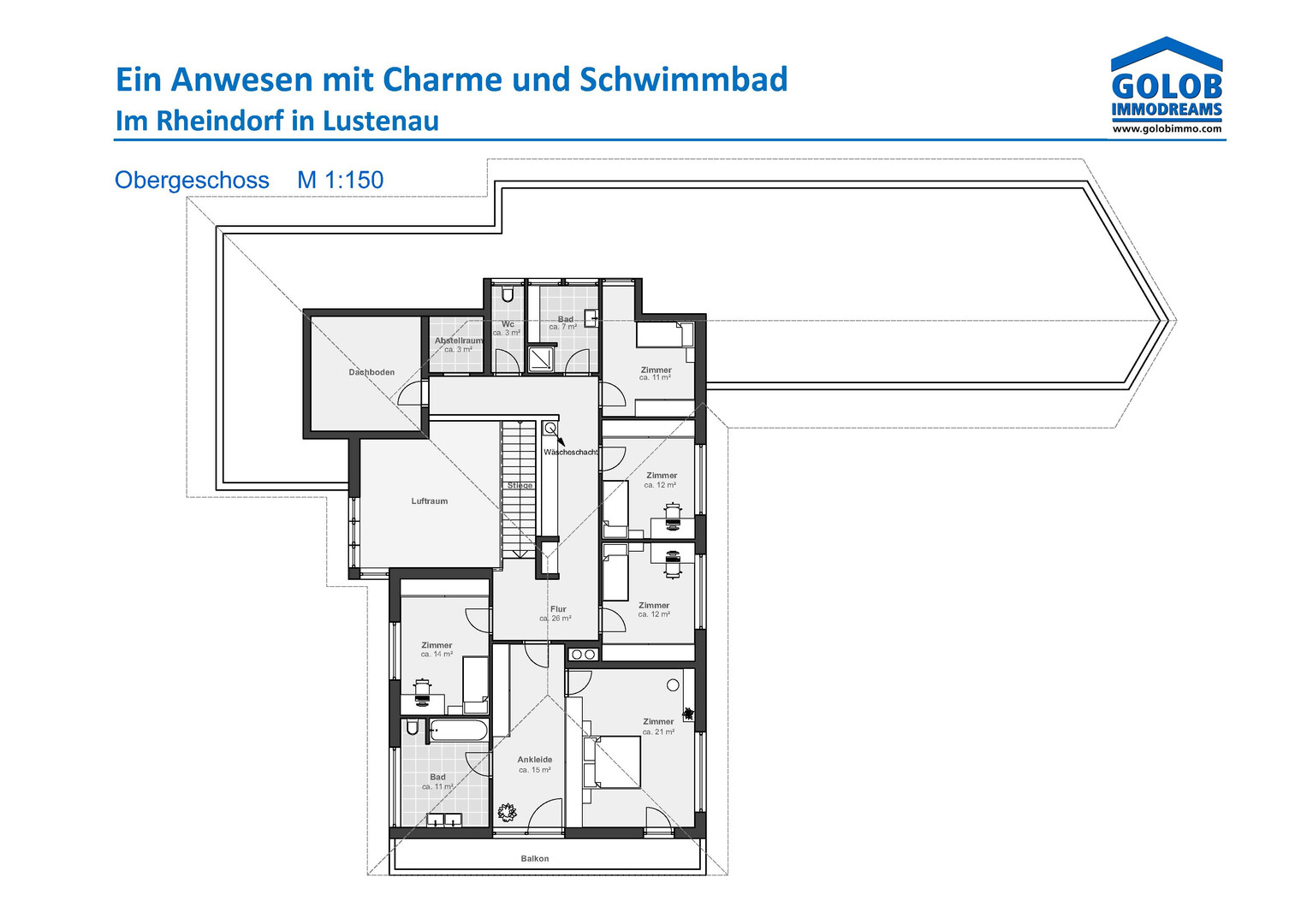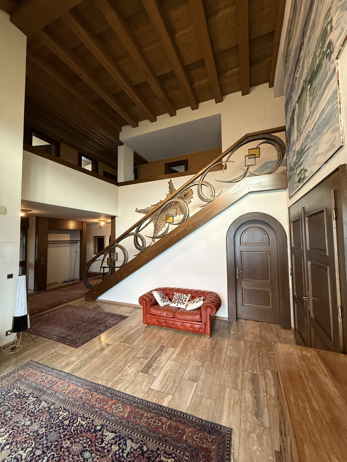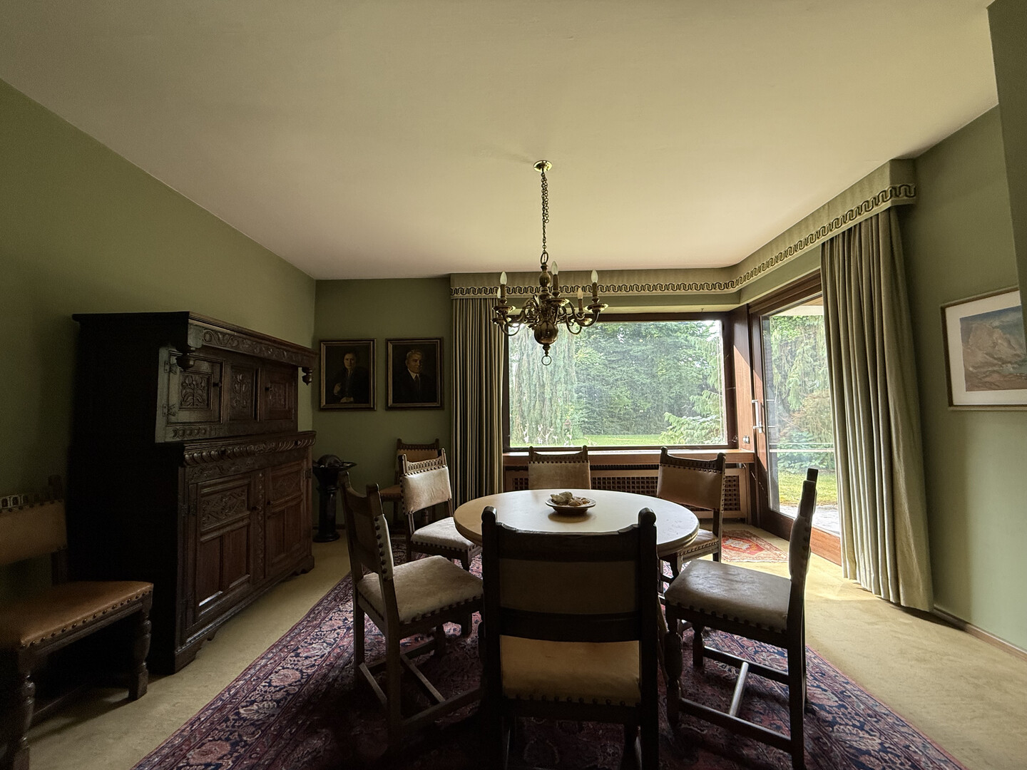 Beim Betreten des Hauses gelangen Sie durch einen Vorraum in den beeindruckenden Eingangsbereich. Von dort sind die verschiedenen Bereiche im Erdgeschoss erschlossen. Über die Treppe gelangen Sie zur Galerie, die das gesamte Obergeschoss erschließt. Das Erdgeschoss umfasst etwa 150 m² und bietet ein großzügiges Wohnzimmer mit Kamin, ein Esszimmer, die Küche, einen Hauswirtschaftsraum sowie ein Gäste-WC. Im Schwimmbadbereich mit ca. 108 m² befinden sich eine separate Umkleide, eine Sauna und ein WC. Das Obergeschoss, etwa 135 m² groß, verfügt über fünf Zimmer, darunter ein Zimmer mit eigenem Badezimmer und Ankleide. Außerdem gibt es ein weiteres Bad, ein separates WC, einen Abstellraum und einen Dachbodenraum. Im Keller mit ca. 145 m² befinden sich die Heizung inklusive Öltanks sowie weitere Kellerräume.