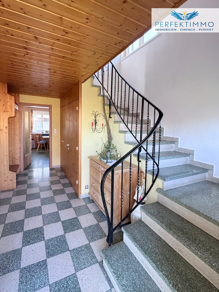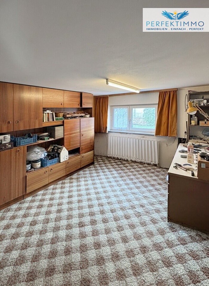 Das Wohnhaus erstreckt sich über Keller-, Erd- und Obergeschoss und verfügt zusätzlich über eine separate Kleinwohnung im Obergeschoss. Diese eignet sich hervorragend für Mehrgenerationenwohnen, größere Kinder, Gäste, Homeoffice oder eine mögliche teilweise Vermietung. Auch eine Nutzung als Arbeitsbereich oder Rückzugsraum lässt sich hier ideal verwirklichen. Ergänzend steht ein Dachgeschoss mit zusätzlichem Stauraum zur Verfügung. Ein besonderer Pluspunkt ist außerdem der vorhandene Weinkeller im Kellergeschoss, der nicht nur praktischen Zusatznutzen bietet, sondern dem Haus auch einen charmanten und besonderen Charakter verleiht. Die großzügige Raumaufteilung innerhalb des Hauses ermöglicht flexible Anpassungen an unterschiedliche Wohnbedürfnisse und Lebenssituationen. Ob als klassisches Familienhaus mit viel Platzangebot, als Mehrgenerationenlösung oder als Projekt mit kombinierter Wohn- und Arbeitsnutzung – die vorhandene Struktur eröffnet vielfältige Möglichkeiten für individuelle Wohnkonzepte. Das Grundstück selbst präsentiert sich nahezu eben und in praktischer rechteckiger Form. Der bestehende Garten mit kleinem Gartenteich schafft eine angenehme Atmosphäre und bietet vielfältige Möglichkeiten zur Neugestaltung – ob Familiengarten, Rückzugsort im Grünen oder moderne Außenanlage nach eigenen Vorstellungen. Die vorhandene Grundstücksgröße bietet ausreichend Platz für Terrassenbereiche, Spielflächen oder gärtnerische Gestaltungsideen und schafft damit ideale Voraussetzungen für naturnahes Wohnen mit hoher Lebensqualität. Neben einer Garage stehen ein Carport sowie zusätzliche Außenabstellflächen zur Verfügung. Dadurch ist ausreichend Platz für mehrere Fahrzeuge vorhanden, was insbesondere für Familien oder Mehrpersonenhaushalte einen zusätzlichen praktischen Vorteil darstellt. Auch Besucherparkmöglichkeiten lassen sich problemlos realisieren.