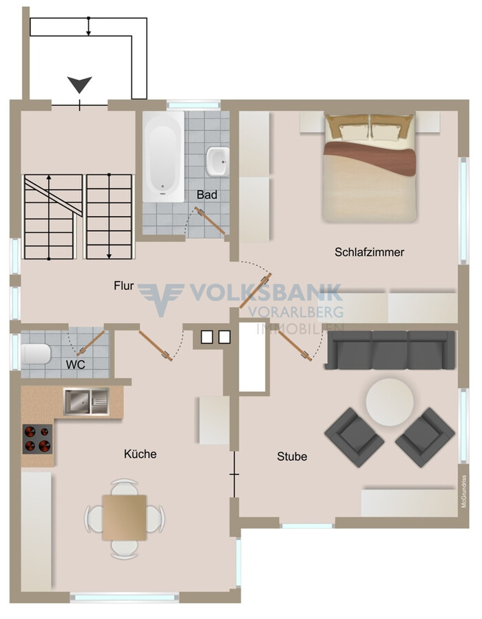 Wir weisen Sie darauf hin, dass der angeführte Grundriss als Symbolbild gilt und dieser sowie die darin enthaltenen Flächenangaben von den tatsächlichen Gegebenheiten abweichen können.