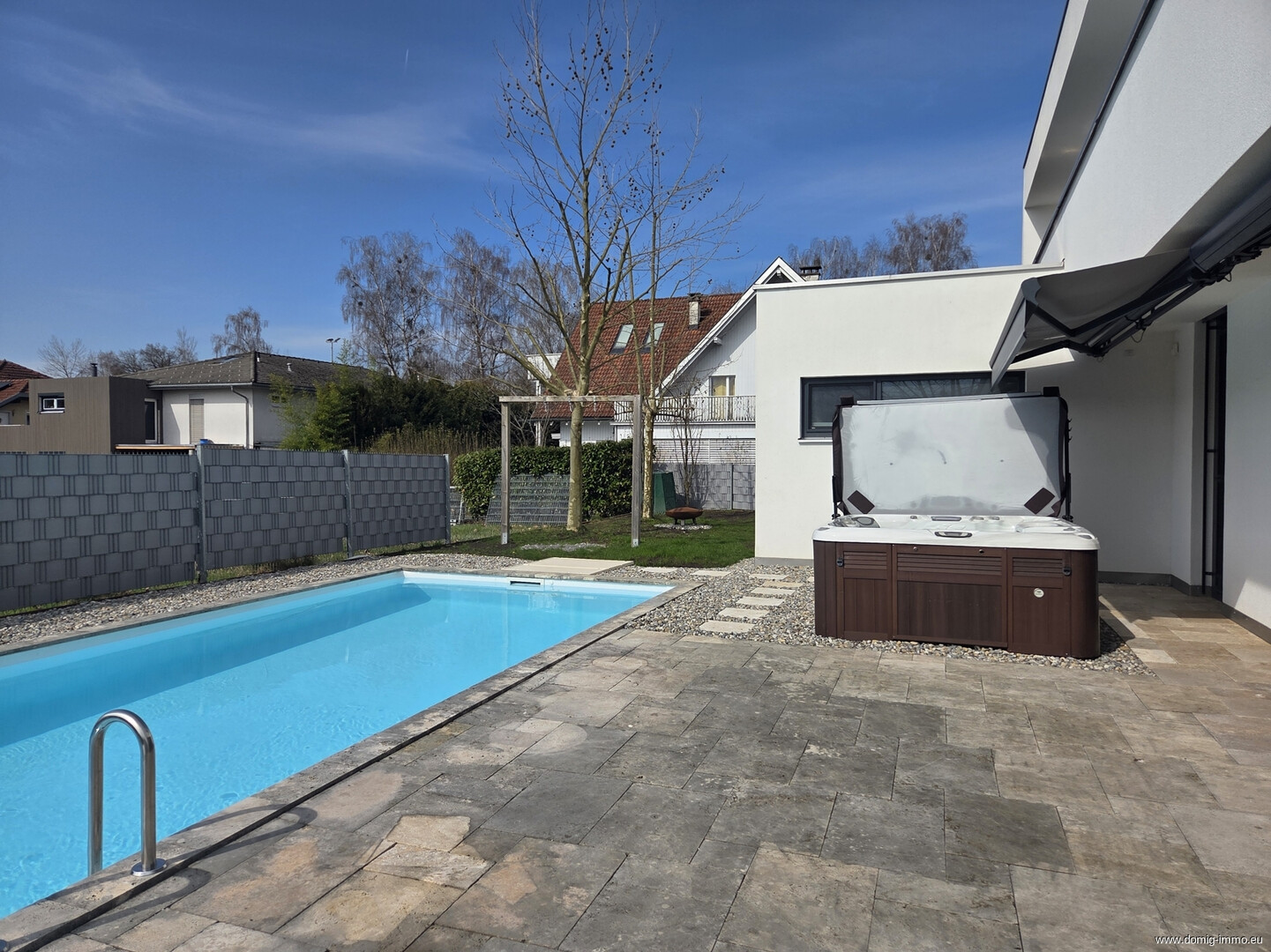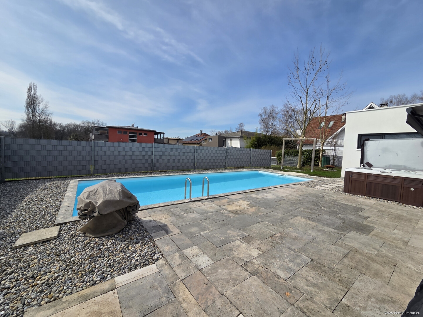 Sehr gepflegtes Einfamilienhaus mit rund 170 m² Wohnfläche, hochwertiger Ausstattung und großzügigem Wohnbereich. Großzügige Terrassen, Swimmingpool, Jacuzzi sowie moderne Haustechnik sorgen für höchsten Wohnkomfort. Das Anwesen befindet sich auf einem insgesamt 1.500 m² großen Grundstück.