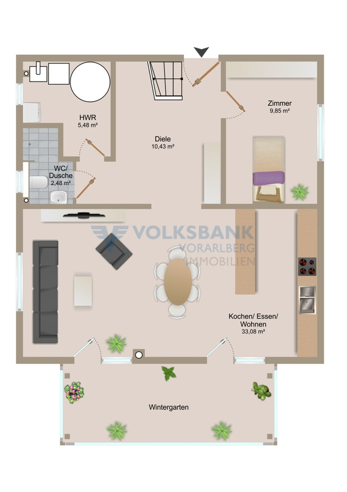 Wir weisen Sie darauf hin, dass der angeführte Grundriss als Symbolbild gilt und dieser sowie die darin enthaltenen Flächenangaben von den tatsächlichen Gegebenheiten abweichen können.