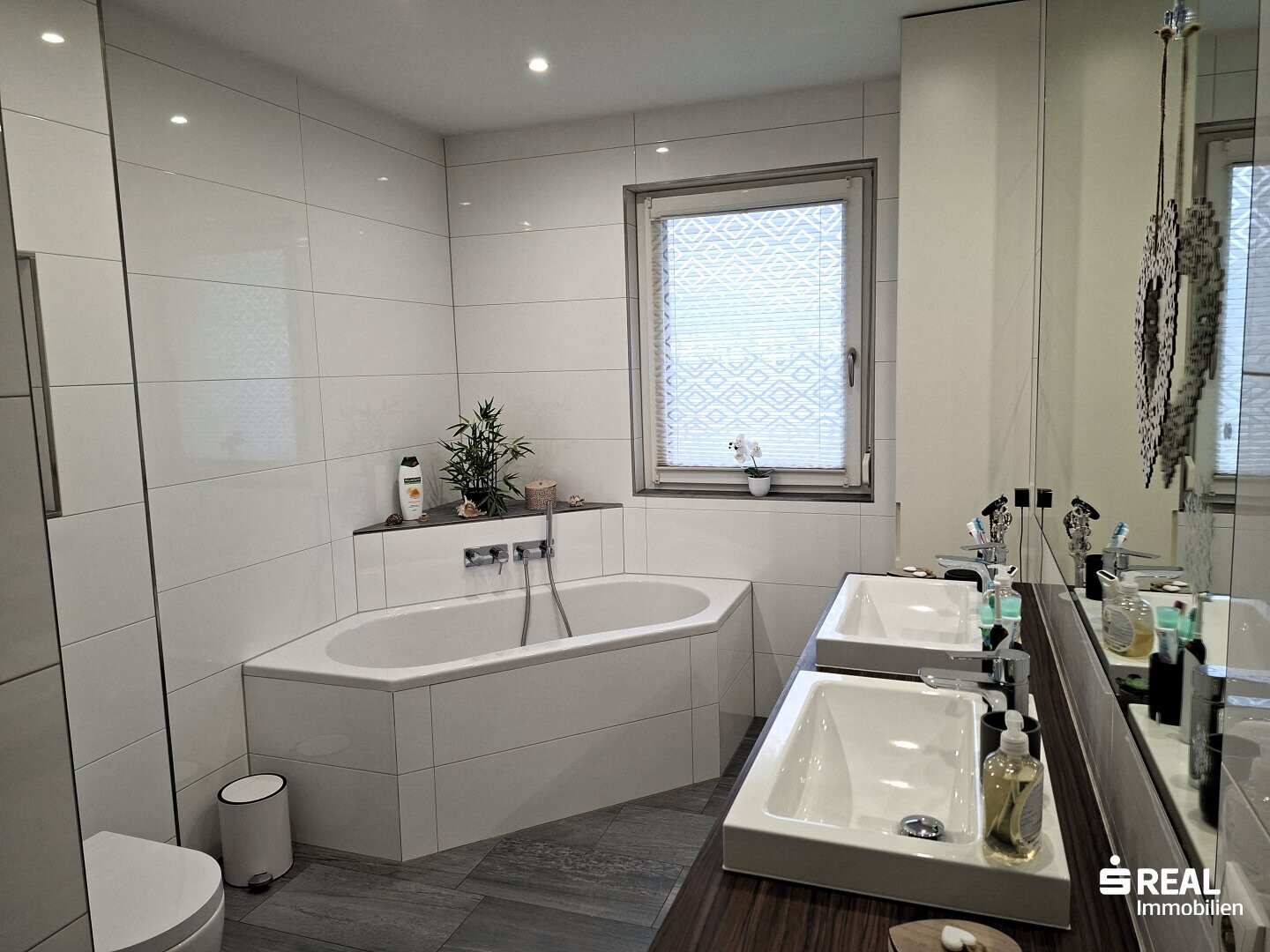Bad mit: Badewanne, Dusche, Fenster