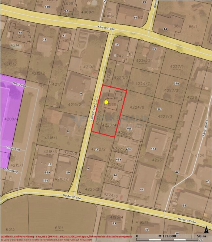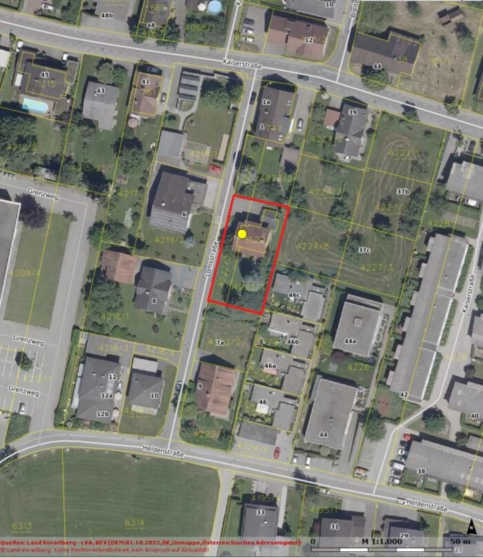 Da sich das Grundstück laut Grundbuchsauszug im Grundsteuerkataster befindet, kann die tatsächliche Grundstücksfläche von jener Flächenangabe im Grundbuch abweichen.