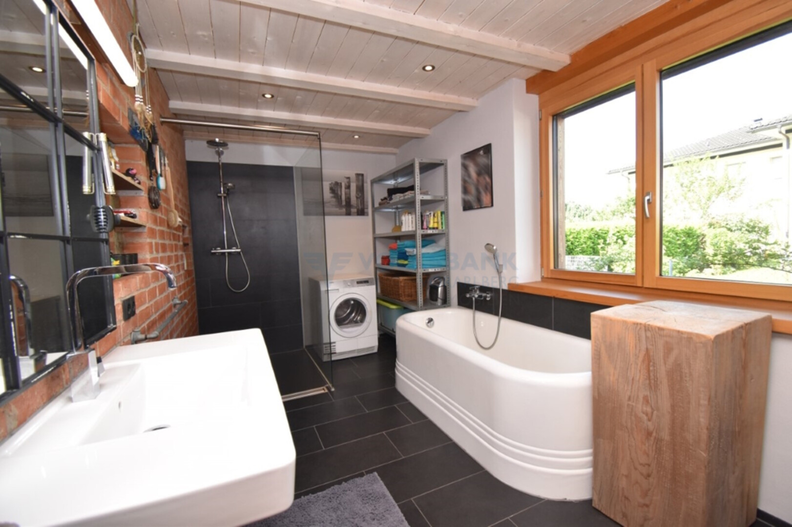 Das voll ausgestattete Bad (Dusche, Wanne, WC, Waschbecken, Waschmaschinenanschluss, Fenster) ist sehr großzügig gestaltet und lässt keine Wünsche offen.
