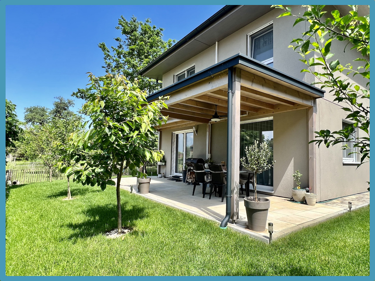 Zum Verkauf gelangt ein im Jahr 2020 von der Firma Elk Haus errichtetes Einfamilienhaus mit Carport auf einem 317 m² großen Grundstück in schöner Lage von Rankweil.