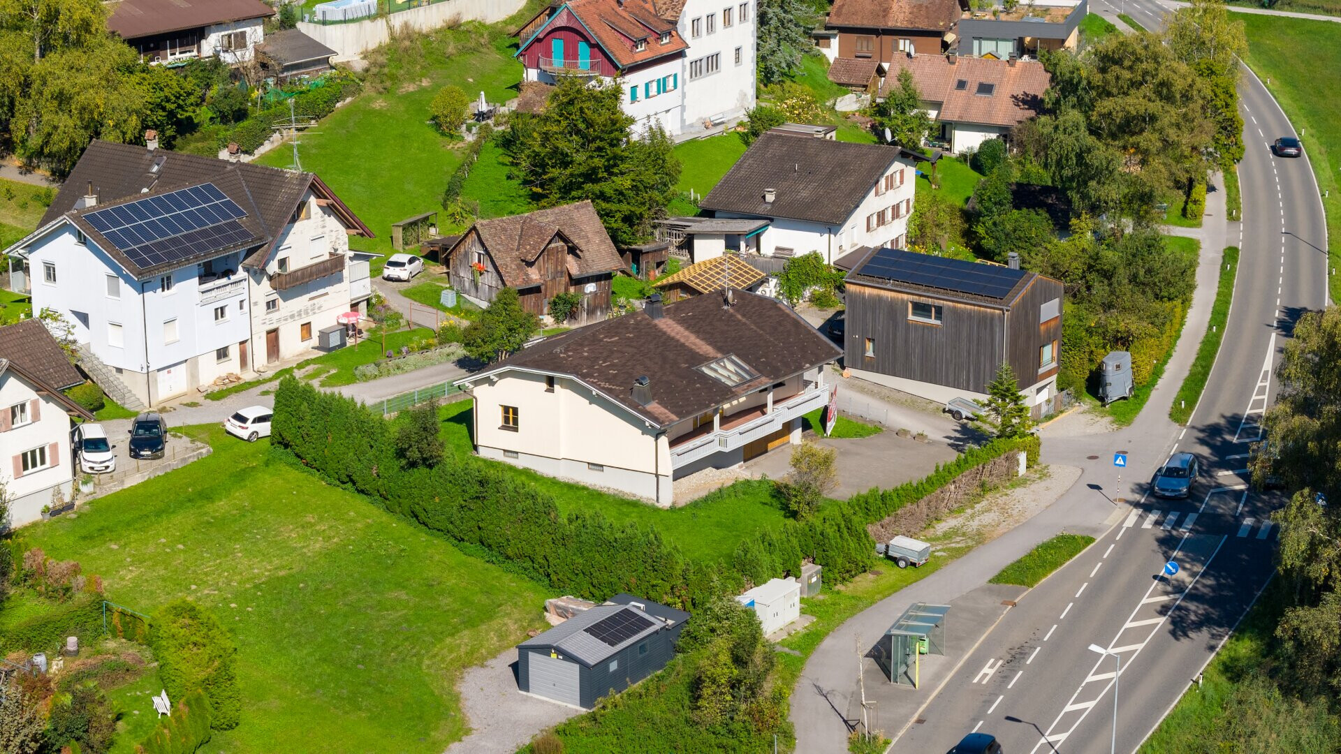 Die Landesstraße L59 sorgt für eine gute Anbindung in die umliegenden Gemeinden und das Rheintal. Familien profitieren von der nahegelegenen Bushaltestelle sowie kurzen Wegen zu Einkaufsmöglichkeiten, Schulen und Freizeitangeboten, die in wenigen Minuten erreichbar sind.