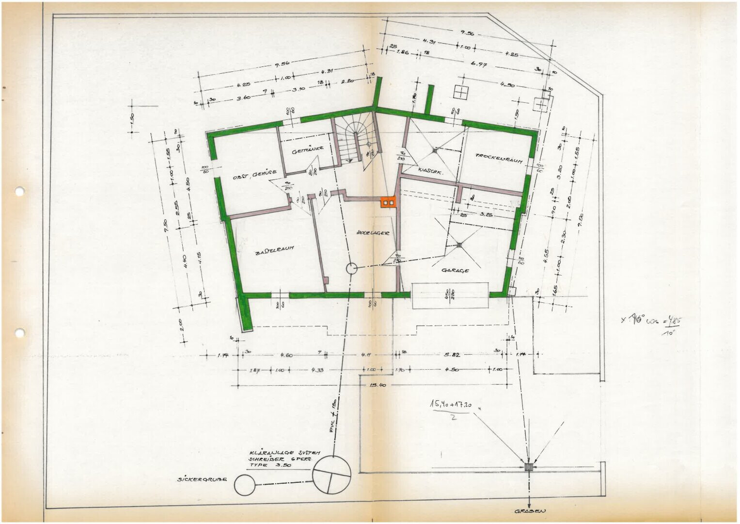 - Kellergeschoss: ca. 134 m² – Hobbyraum (32,80 m²), Garage (34 m²), Waschküche, Lagerräume