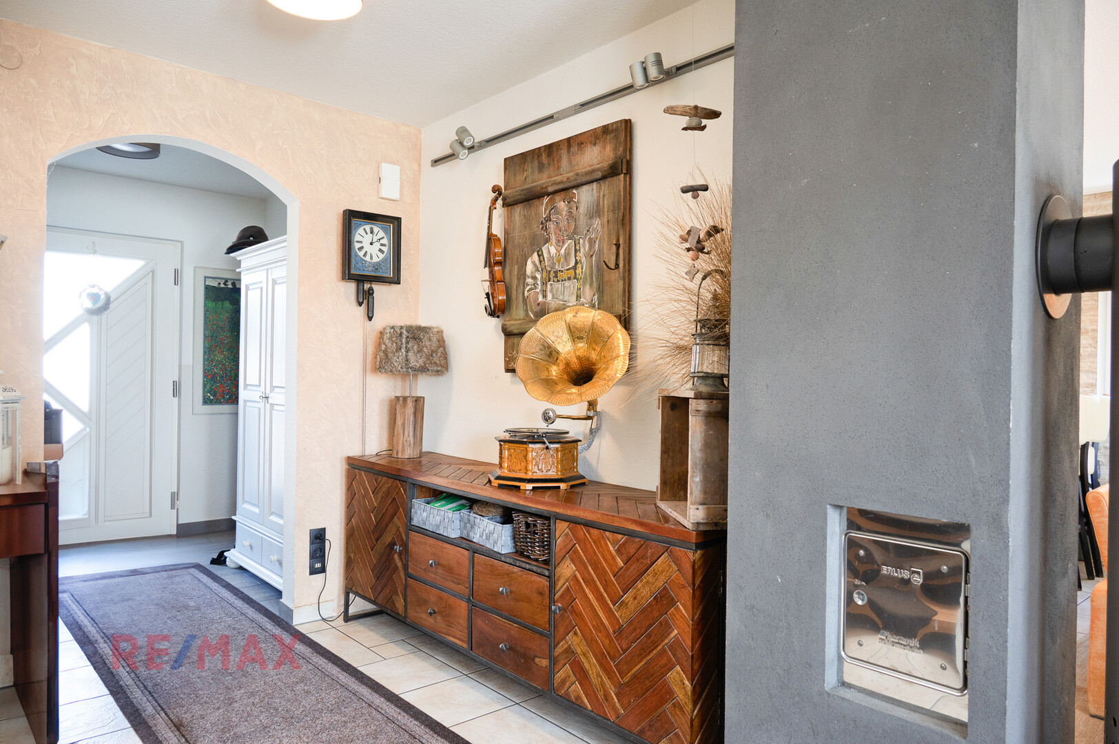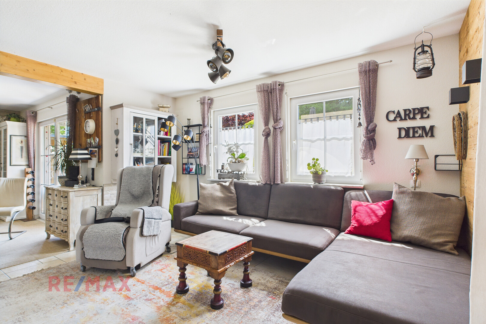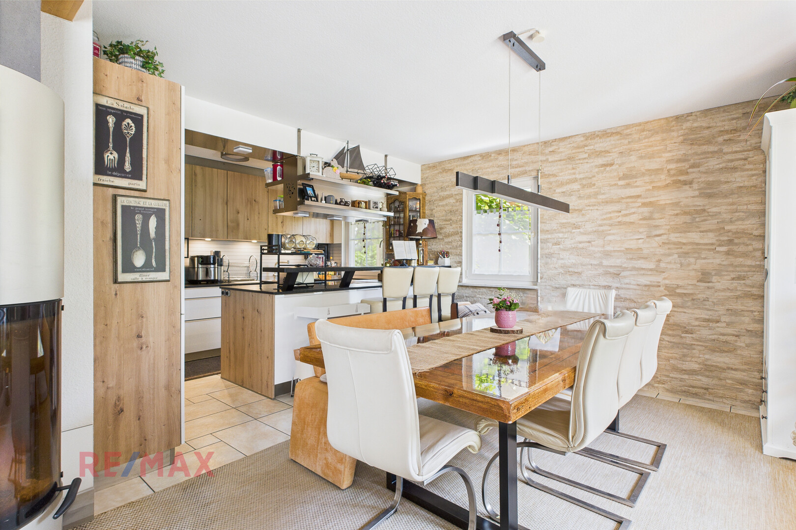 Das Haus überzeugt bereits beim Eintreten durch seine offene Raumgestaltung und die hellen, lichtdurchfluteten Wohnbereiche. Große Fensterfronten sorgen nicht nur für ein angenehmes Tageslicht, sondern schaffen auch eine direkte Verbindung zum Außenbereich und bieten einen freien Blick in den gepflegten Garten und die umliegende Landschaft.