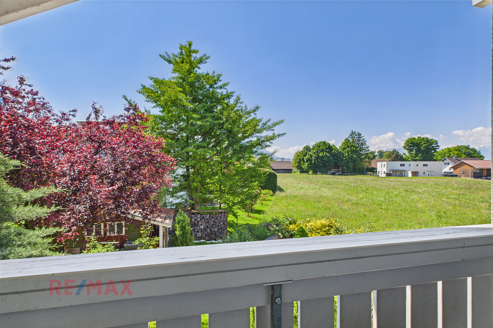 Im Obergeschoss erwartet Sie ein Balkon mit schöner Aussicht, von dem aus Sie morgens die Sonne genießen oder abends den Blick in die Ferne schweifen lassen können. Die ruhige Umgebung und die Weite des Blicks vermitteln ein angenehmes Gefühl von Freiheit und Entschleunigung.