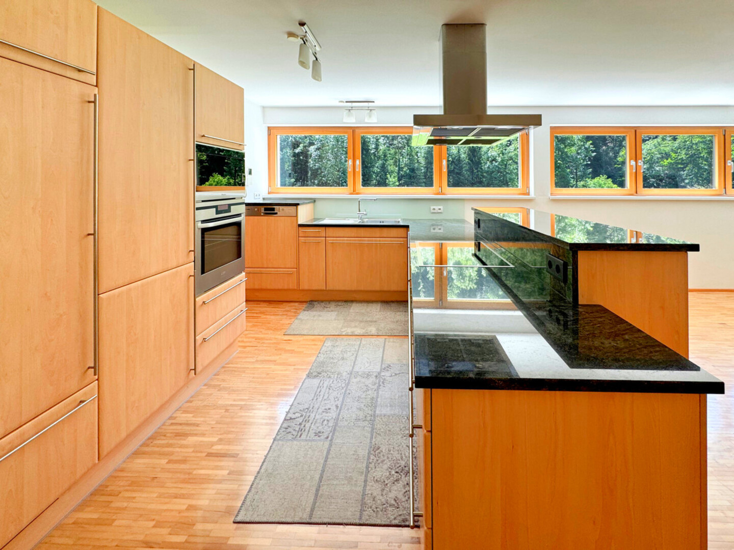 Die Raumaufteilung überzeugt mit Großzügigkeit und Flexibilität: Zehn Zimmer auf zwei Ebenen bieten viel Platz für Familien, Kreative oder Menschen mit Homeoffice-Bedarf. Das Obergeschoss bildet das Herzstück des Hauses: Ein lichtdurchfluteter Wohnbereich mit offener Küche und Speicherofen, großzügige Fensterfronten und direkter Zugang zur Terrasse und zum Garten schaffen ein einzigartiges Wohngefühl. Der Garten ist liebevoll gestaltet – mit Hochbeet, Ofen und ausreichend Raum für Rückzug oder Gemeinschaft. Das Tageslicht-Badezimmer ist ein echtes Highlight: Ausgestattet mit Badewanne, Dusche, mehreren Fenstern und einem Schwedenofen verbindet es Komfort mit Wohnlichkeit. Das Erdgeschoss bietet weitere Schlafzimmer, ein zweites Bad, eine kompakte Küche sowie direkten Zugang zur Terrasse. Zusätzliche Highlights: eine große Garage, ein vielseitig nutzbarer Keller, Hobby- und Technikräume – alles auf höchstem Niveau gepflegt.