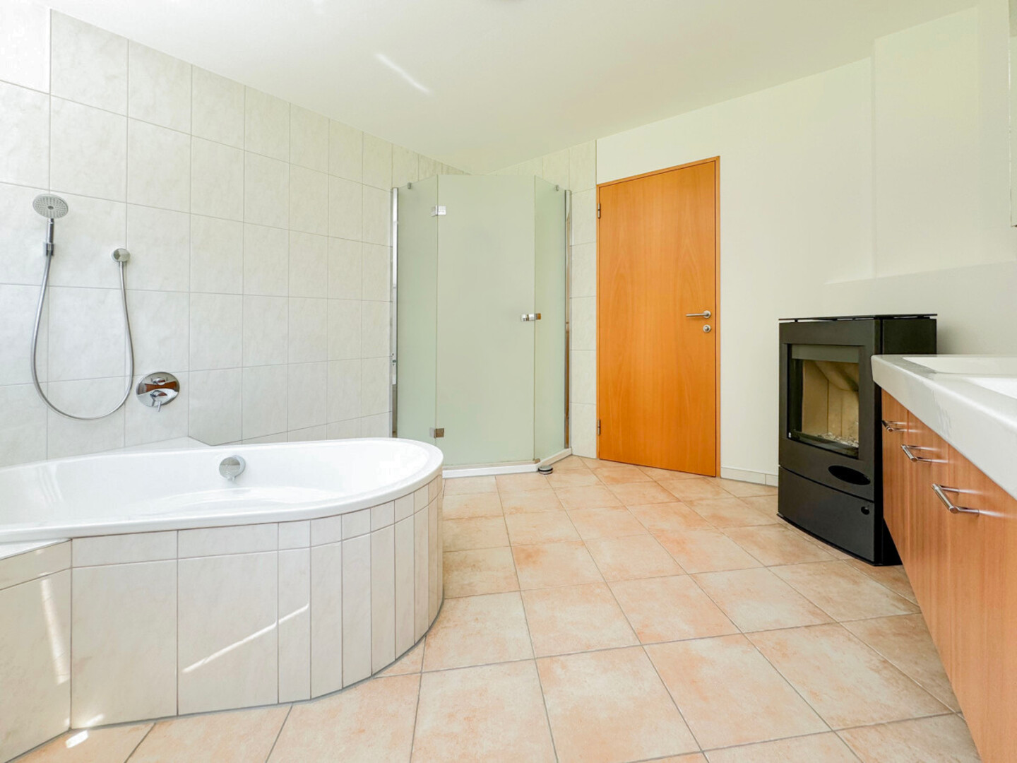 Besonders hervorzuheben ist die nachhaltige und durchdachte Haustechnik: Eine Erdwärmeheizung, ein Kachelofen sowie ein Schwedenofen sorgen für wohlige Wärme und extrem niedrige Betriebskosten. Ergänzt wird das System durch eine solare Warmwasseraufbereitung. Der voll ausgebaute Keller schafft wertvollen Zusatzraum für Hobby, Arbeit oder Gäste.
