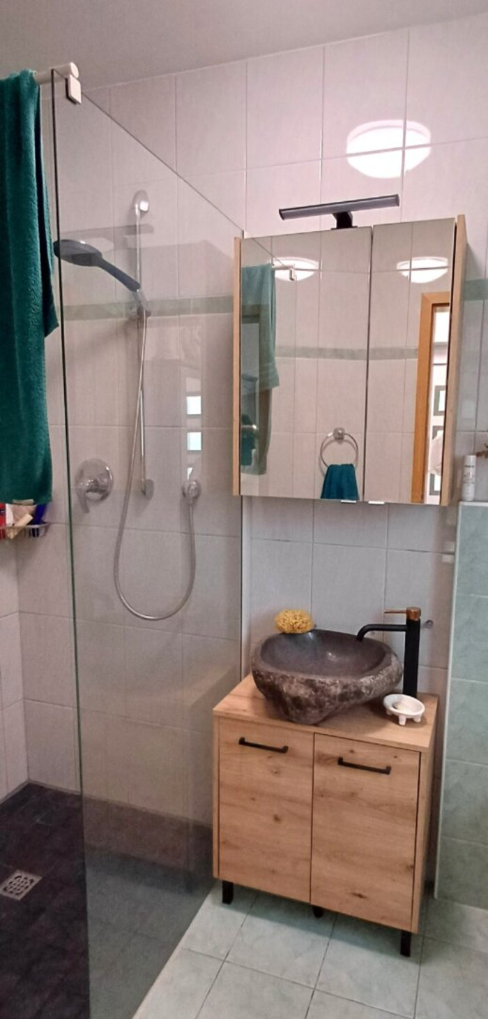 Bad mit: Badewanne, Dusche, Fenster