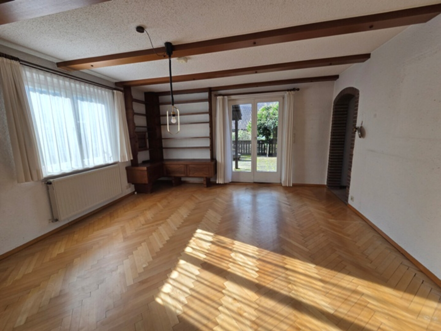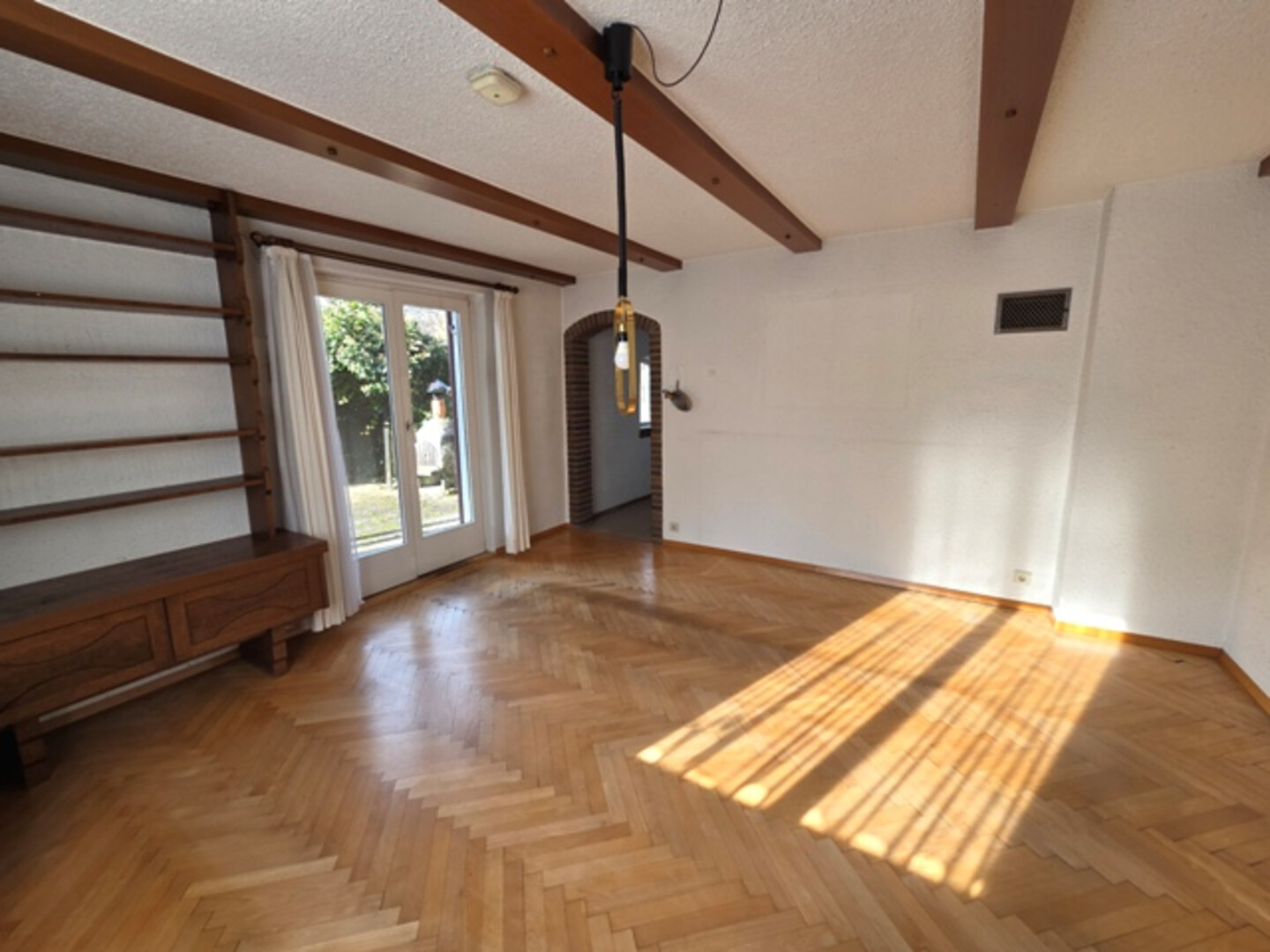 Im Haus befinden sich unterschiedliche Bodenbeläge: Parkett-,Holzriemen-, Kork-, und Teppichböden