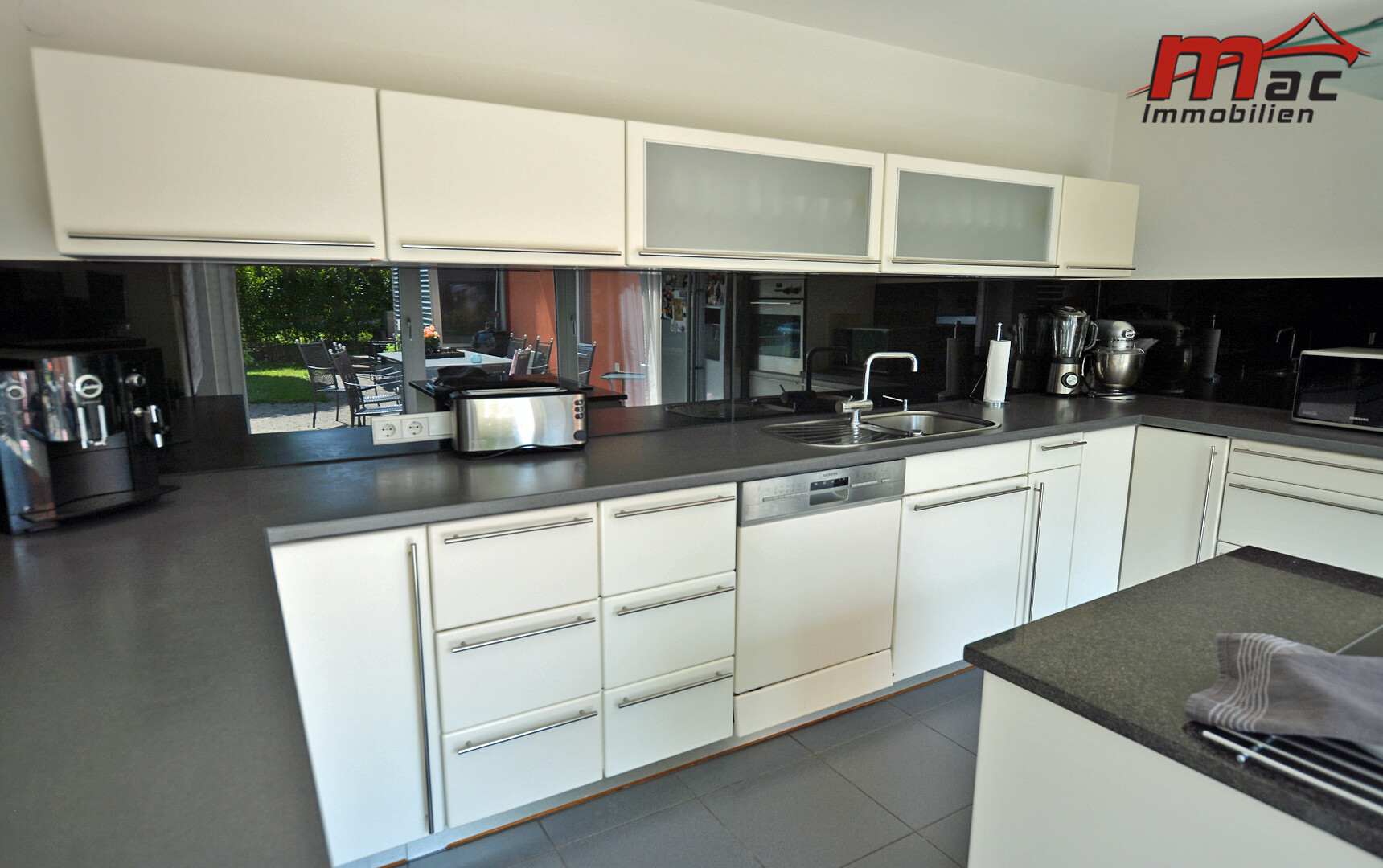 Die moderne Reiter-Küche mit hochwertigen Einbauten und großzügiger Arbeitsfläche lässt keine Wünsche offen; der Geschirrspüler wurde erst vor zwei Jahren erneuert.