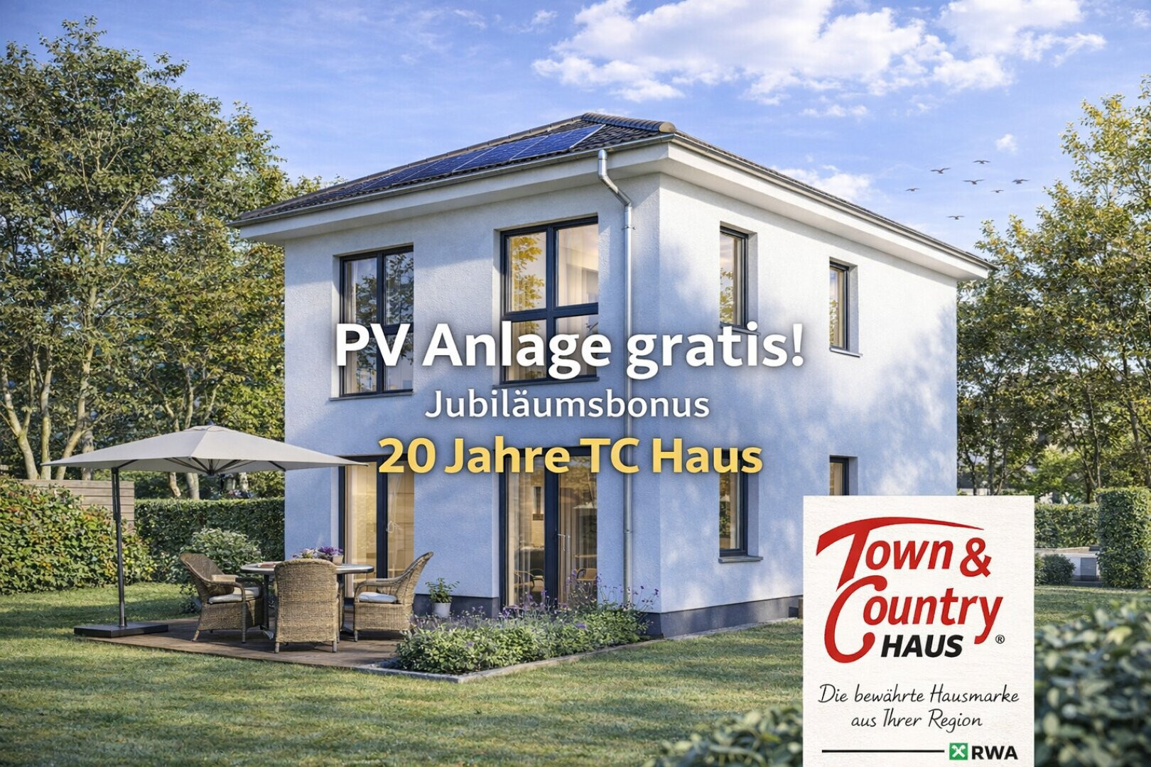 Wir feiern Jubiläum - 20 Jahre TC Haus in Österreich sowie in Vorarlberg und Sie feiern gleich mit: wir schenken Ihnen eine PV Anlage mit 4,5 kwp - fix und fertig installiert - zum Haus dazu!