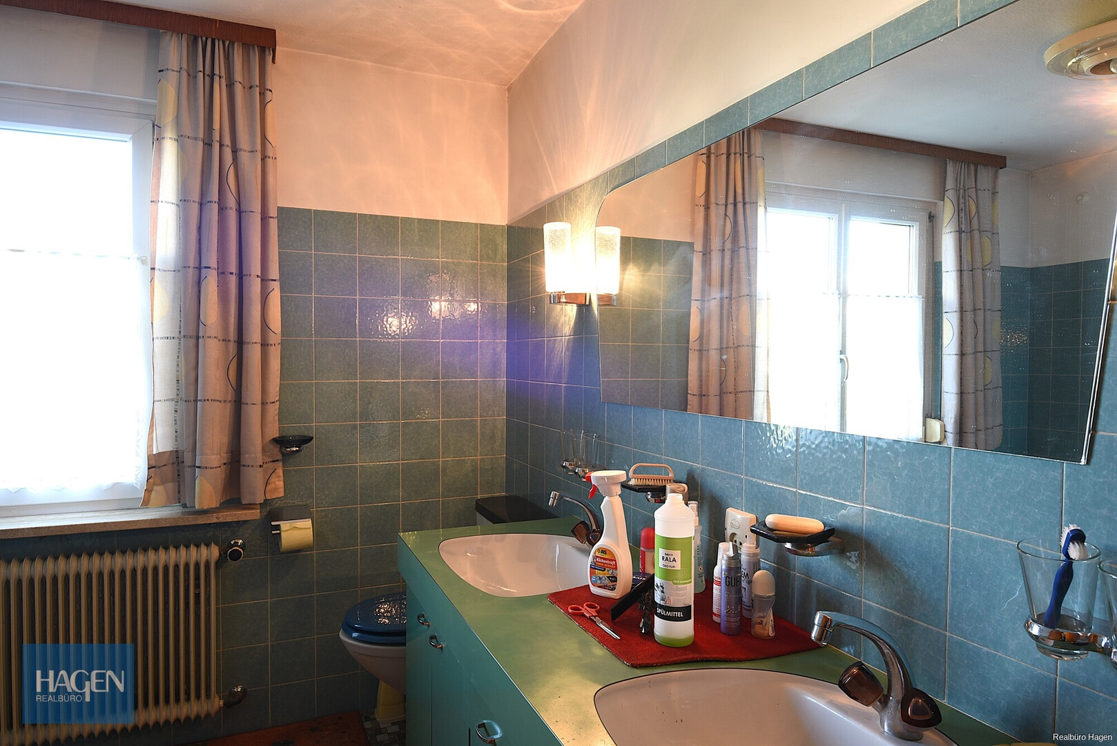 Es bietet im Erdgeschoss eine Wohnfläche von etwa 90 m², dazu einen voll unterkellerten Bereich von ca. 60 m². Zusätzlich gehört eine Doppelgarage sowie mehrere Abstellplätze zum Objekt. Der Garten ist nach Süden ausgerichtet und großzügig angelegt – ideal zum Entspannen, Spielen oder Gartengestalten.