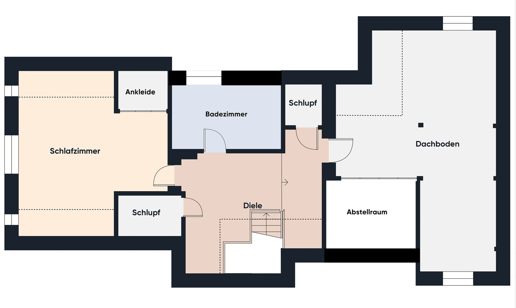 Auch der ausgebaute Dachboden überzeugt mit viel Platz und vielseitigen Nutzungsmöglichkeiten: ob als zusätzlicher Wohnraum, Atelier oder gemütlicher Rückzugsort – hier sind Ihrer Fantasie keine Grenzen gesetzt.