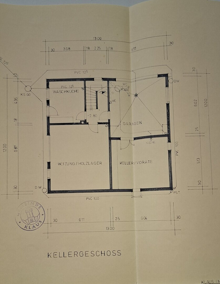 Das Wohnhaus ist voll unterkellert und bietet einen Vorratsraum, Technikraum, große Garage sowie eine Dusche und WC.