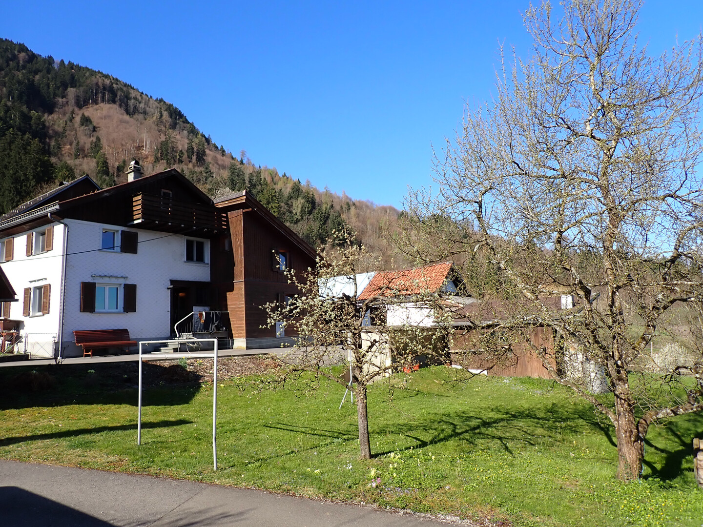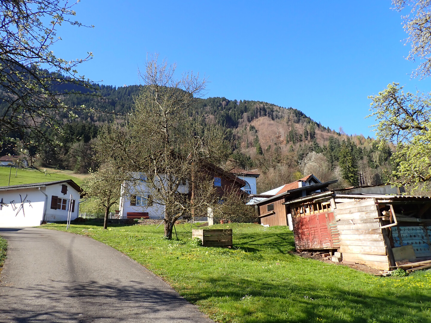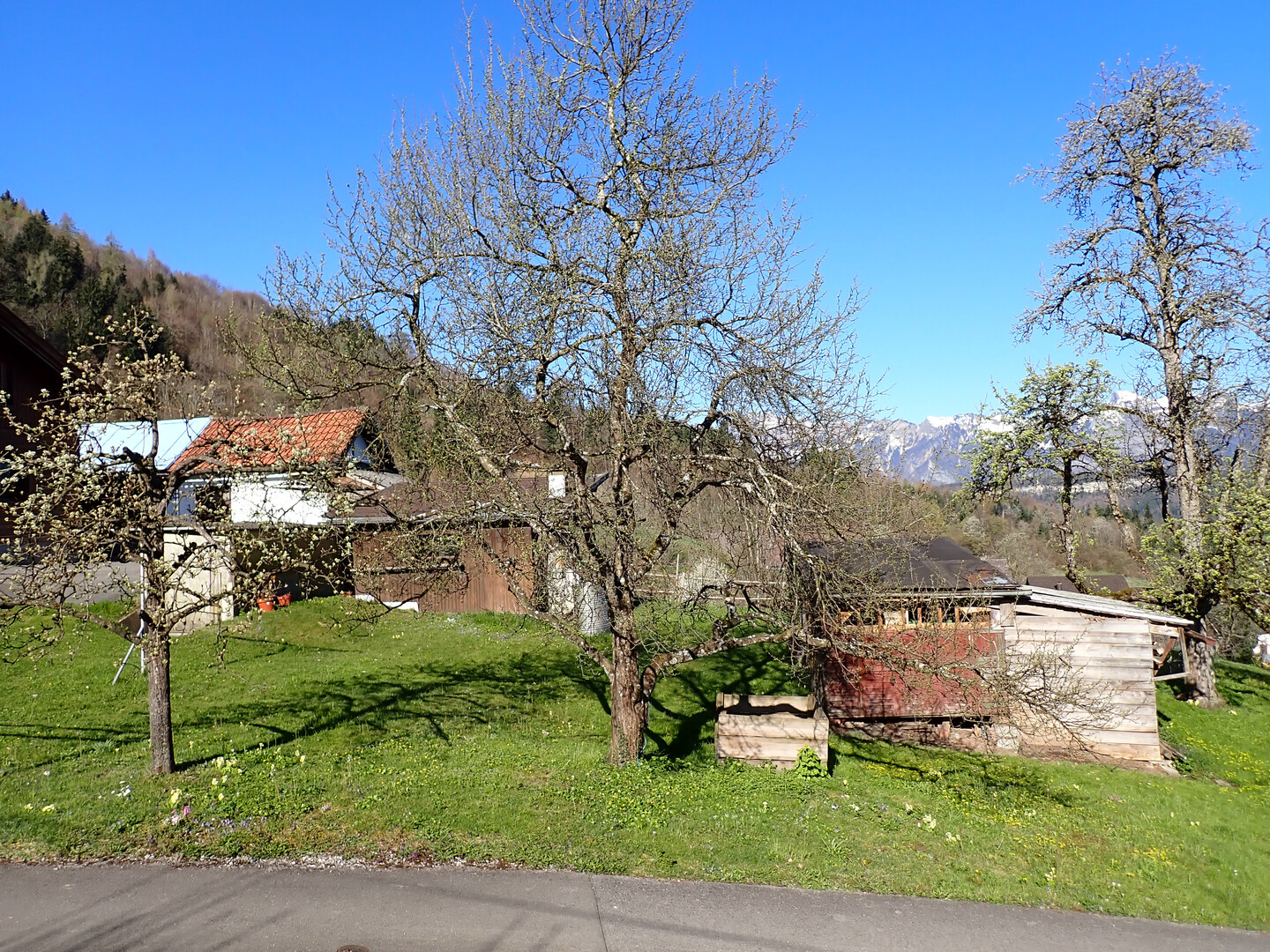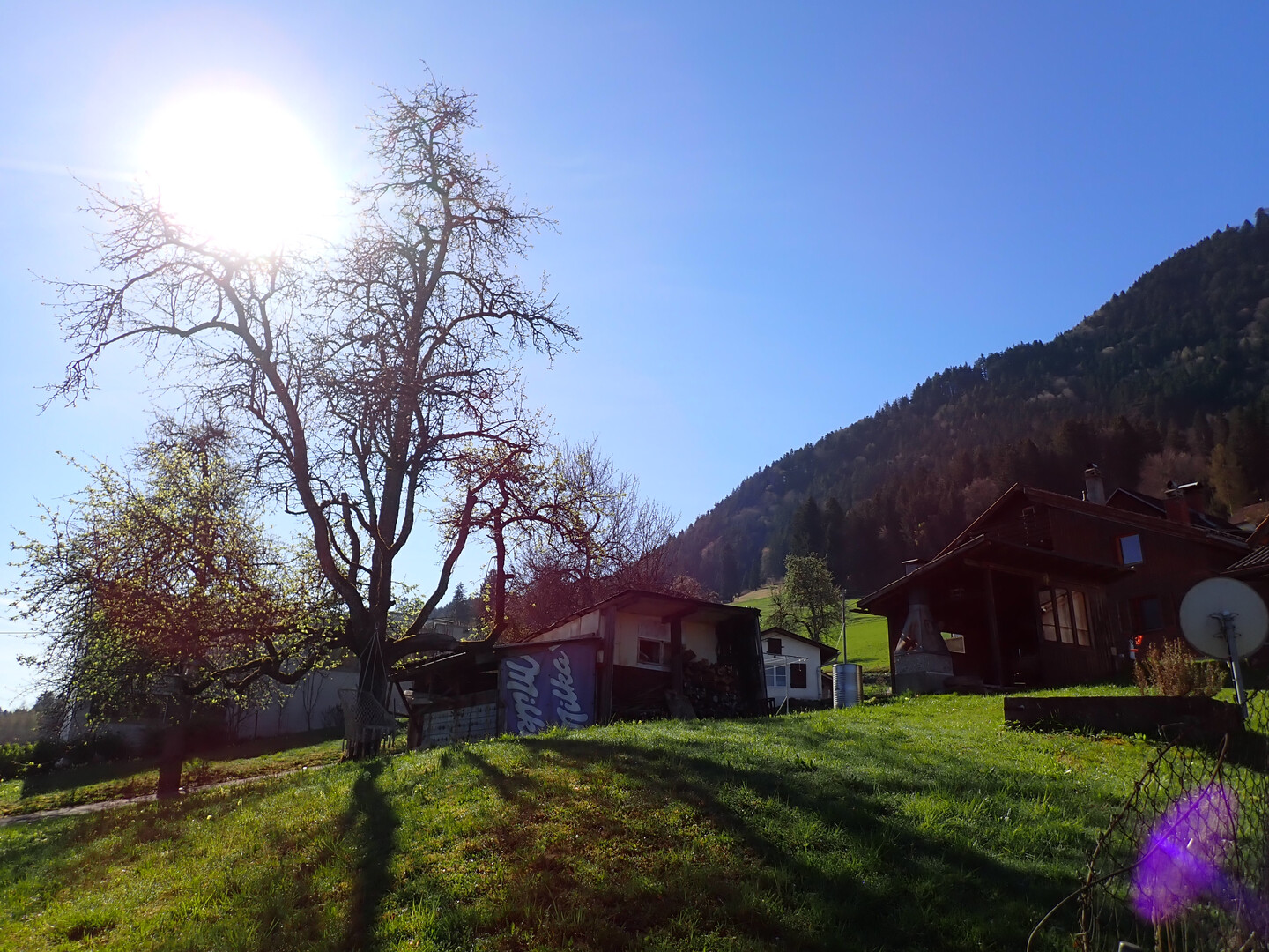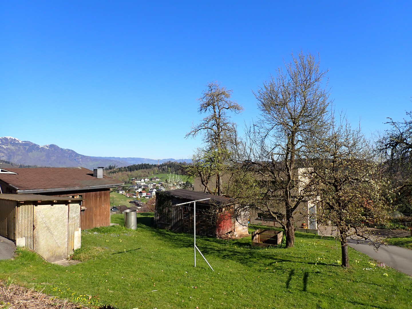 Der Garten ist etwas ganz besonderes und theoretisch als separater Bauplatz zu betrachten… im Sommer ist der Sonnenaufgang hinter dem Zitterklapfen zu sehen und der Sonnenuntergang hinter den Schweizer Bergen, der Hohe Kasten und der Montlinger Schwamm wirken zum Greifen nahe…