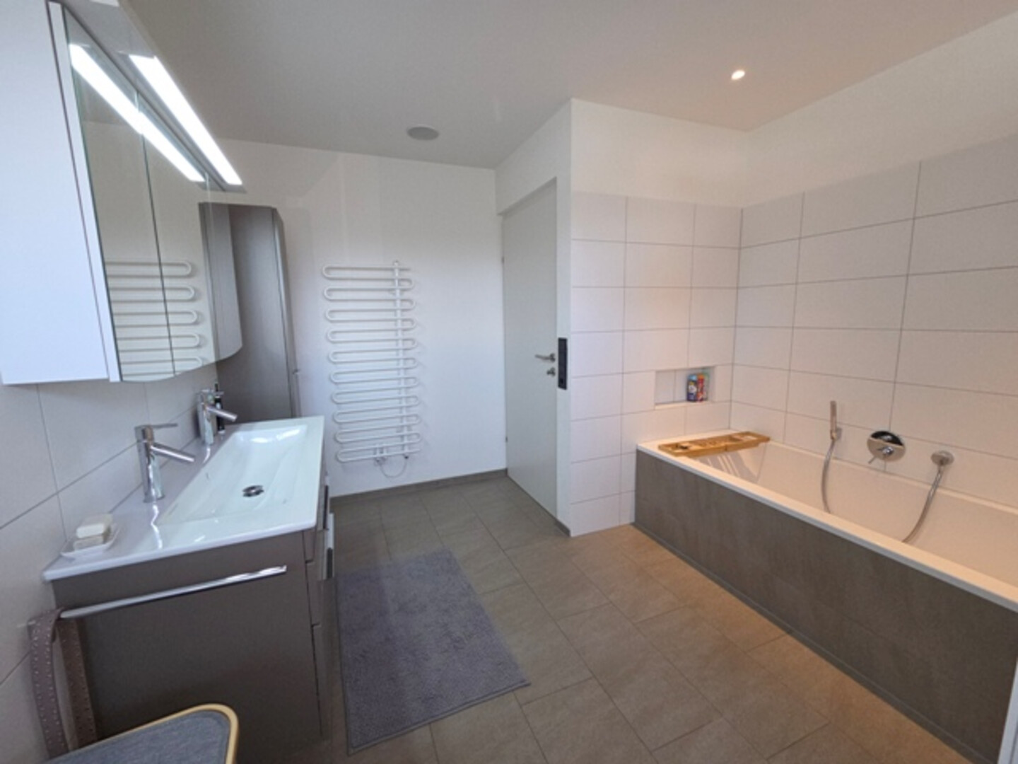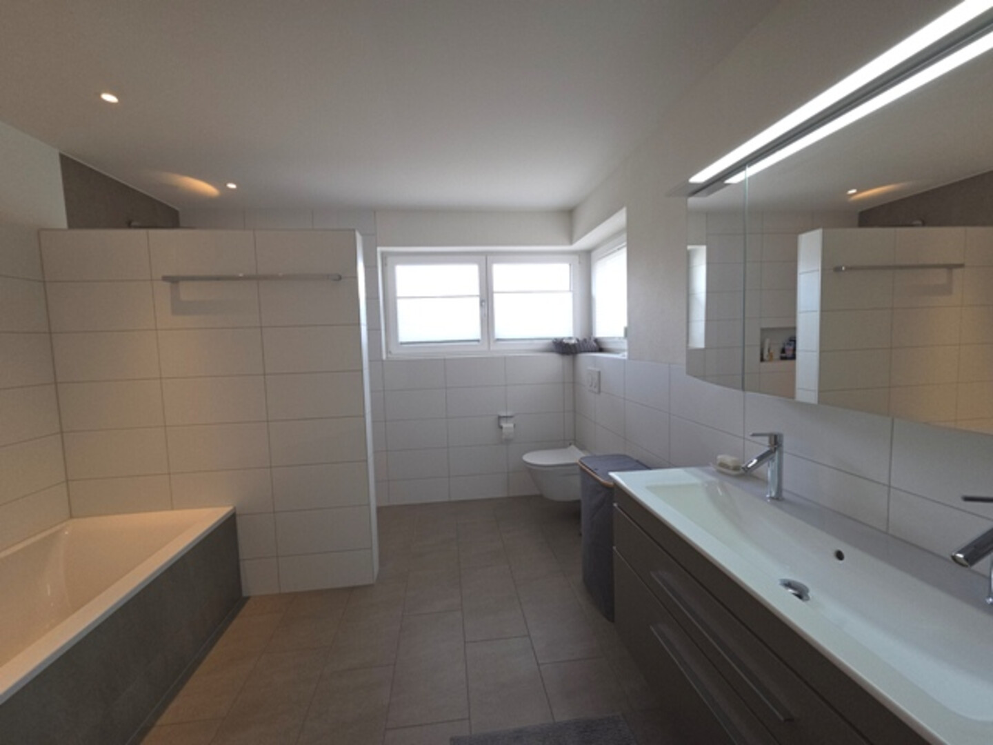 Im Obergeschoss befinden sich ein Gang, ein Arbeitszimmer/Büro, zwei Kinderzimmer, ein Elternzimmer, ein Badezimmer (inkl. Waschbecken, Dusche, Badewanne, WC und Badezimmerverbau).