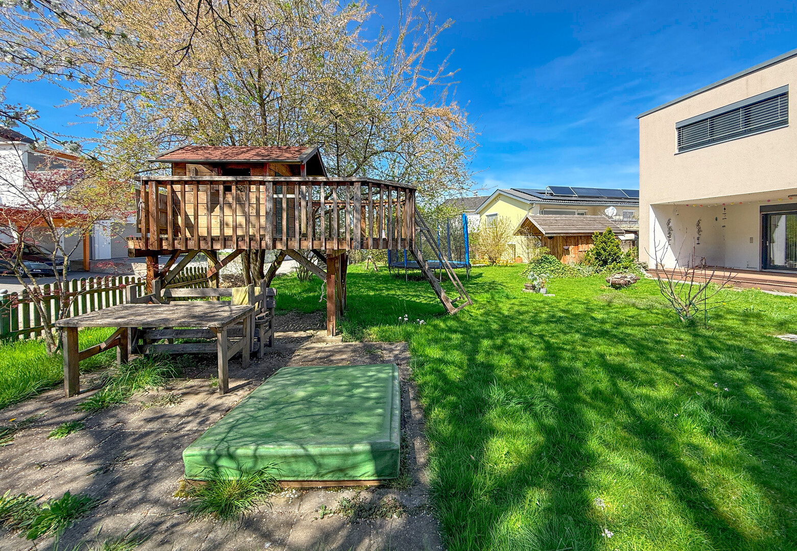 eigener Garten mit viel Freiraum für Entspannung, gemeinsames Gärtnern oder spielen im Schatten