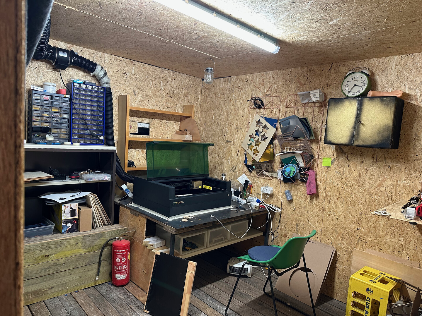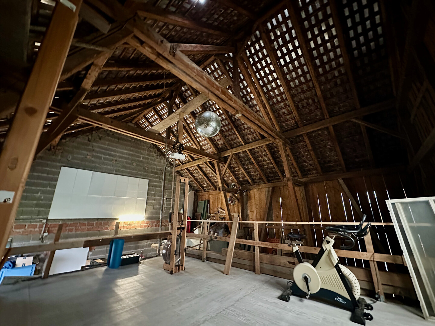 - Dach Werkstatt wird aktuell als Bewegungsraum in frischer Luft genutzt (Rudergerät, Hometrainer, Beamer)