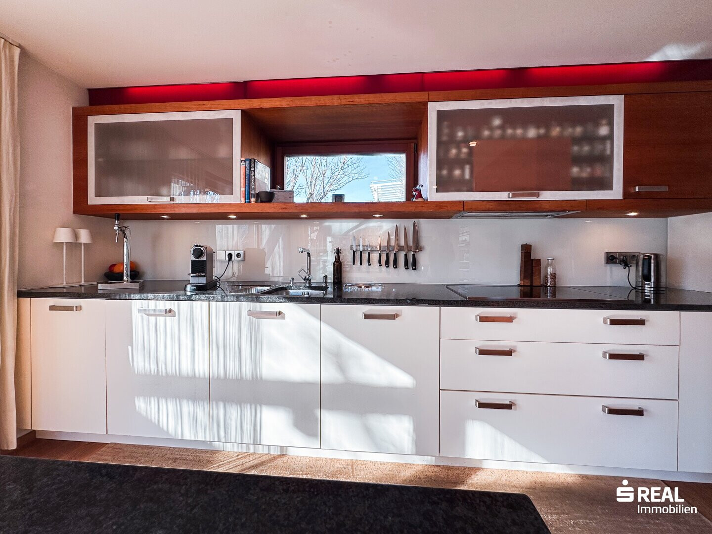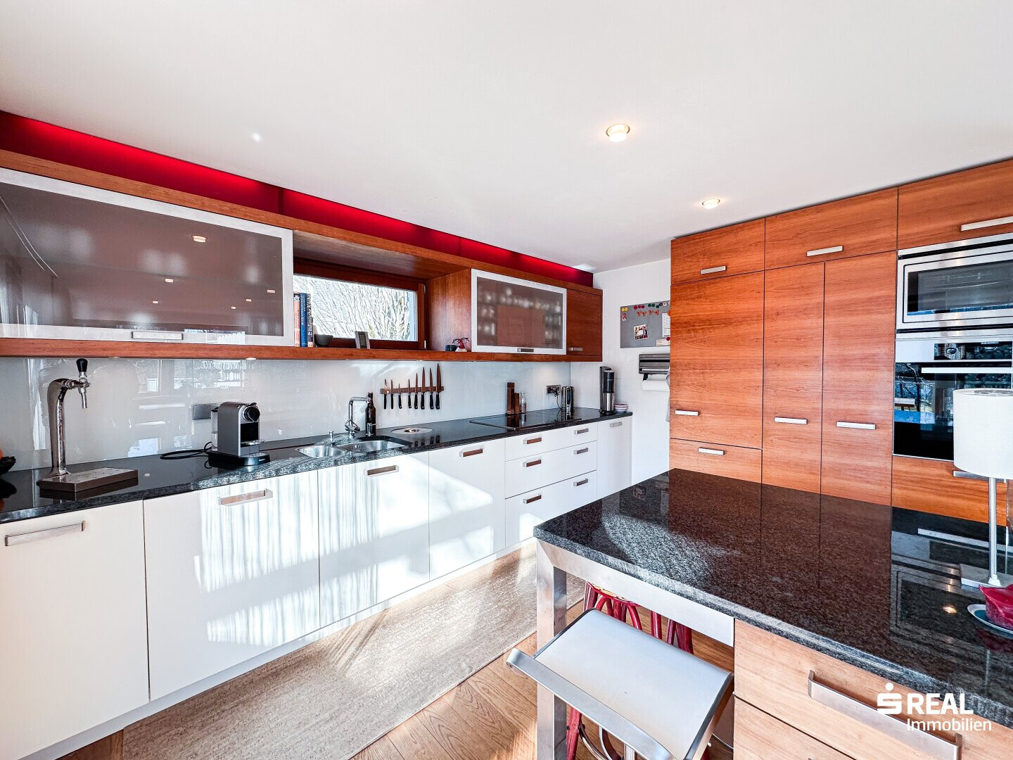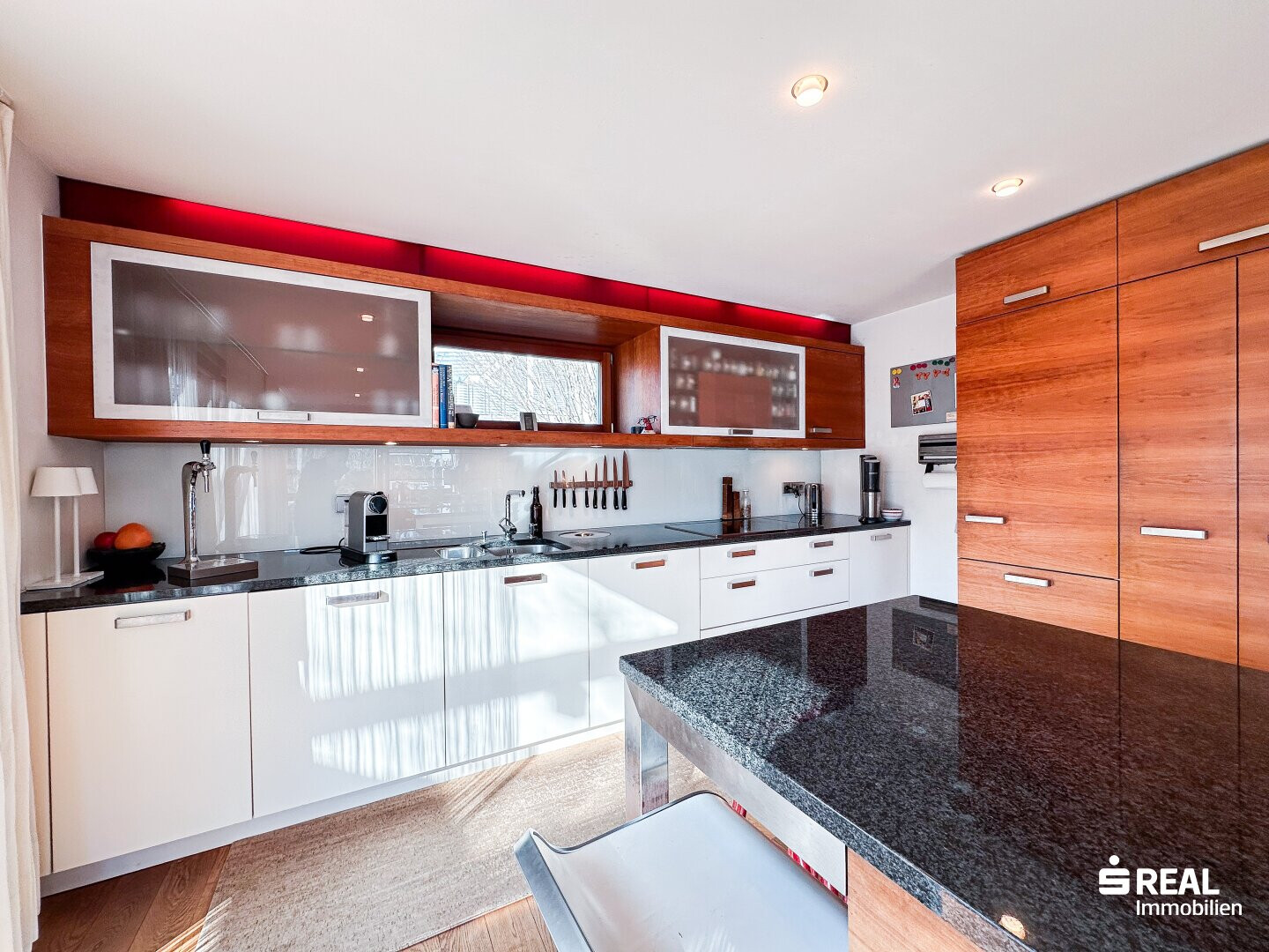 In diesen modern gestalteten Räumlichkeiten mit Zugang zur großen, überdachten Terrasse lässt es sich gut leben und genießen.