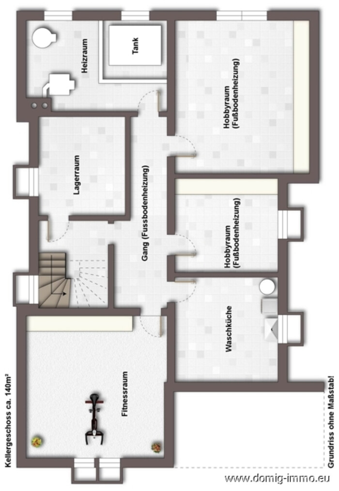 Der Kellerbereich umfasst eine Fläche von ca. 140 m² und bietet neben genügend Staufläche auch viele andere Möglichkeiten der Nutzung. Richten Sie ihren eigenen Fitnessraum ein, nutzen Sie ihn als Partyraum oder aber gestalten Sie einen Werkraum.