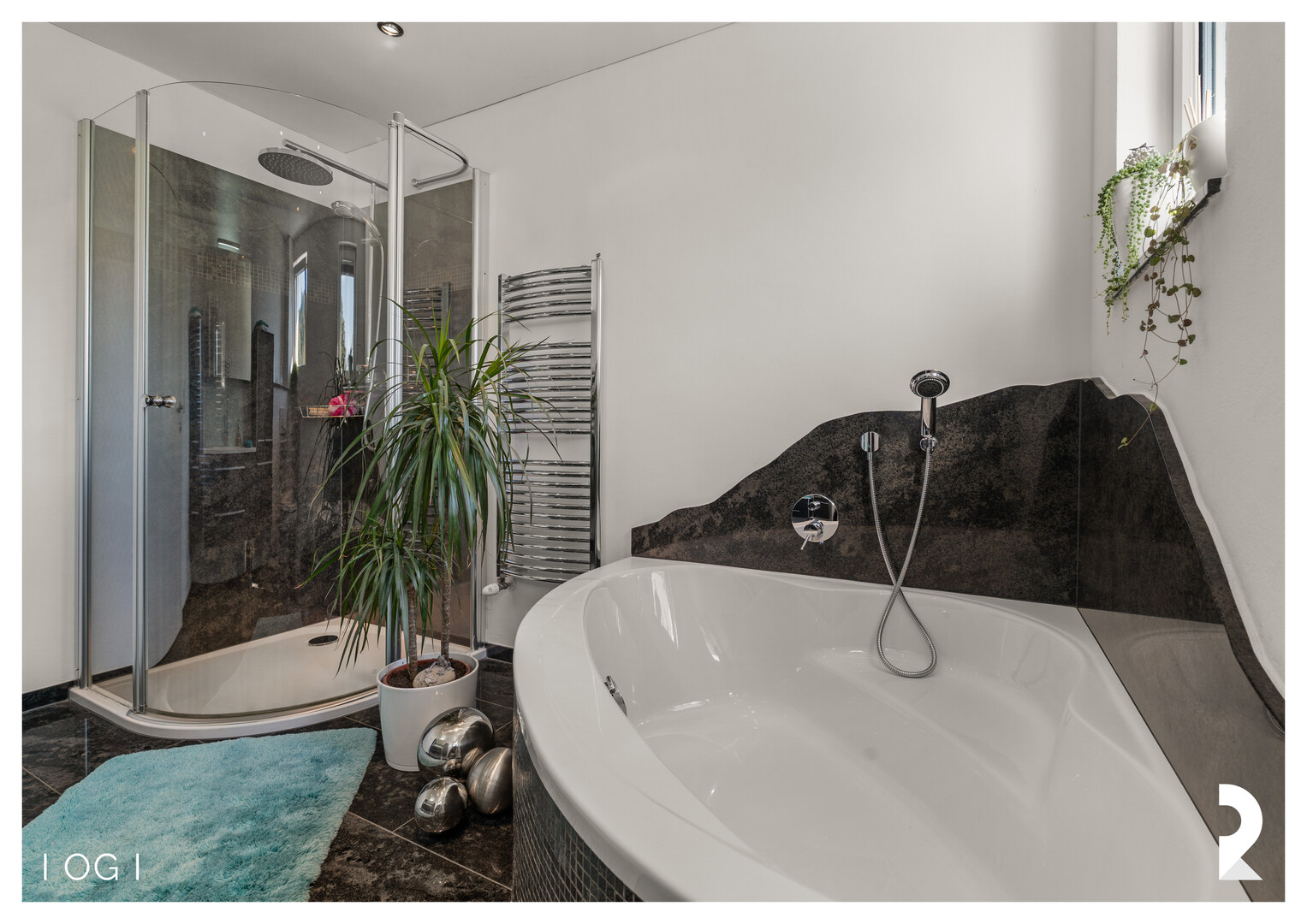 Bad mit: Badewanne, Dusche, Fenster