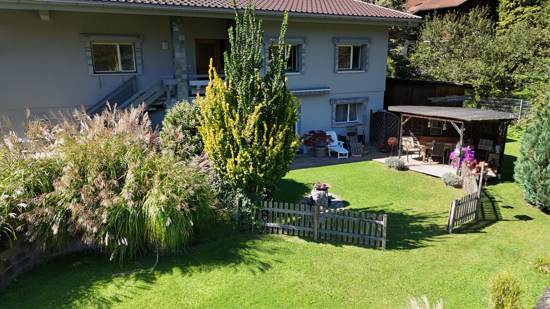Der Außenbereich lädt zum Verweilen ein – ob zum Spielen für Kinder, für entspannte Stunden im Grünen oder gesellige Abende mit Familie und Freunden. Hier lässt sich das Leben genießen, fernab von Hektik und dennoch mitten im Geschehen.