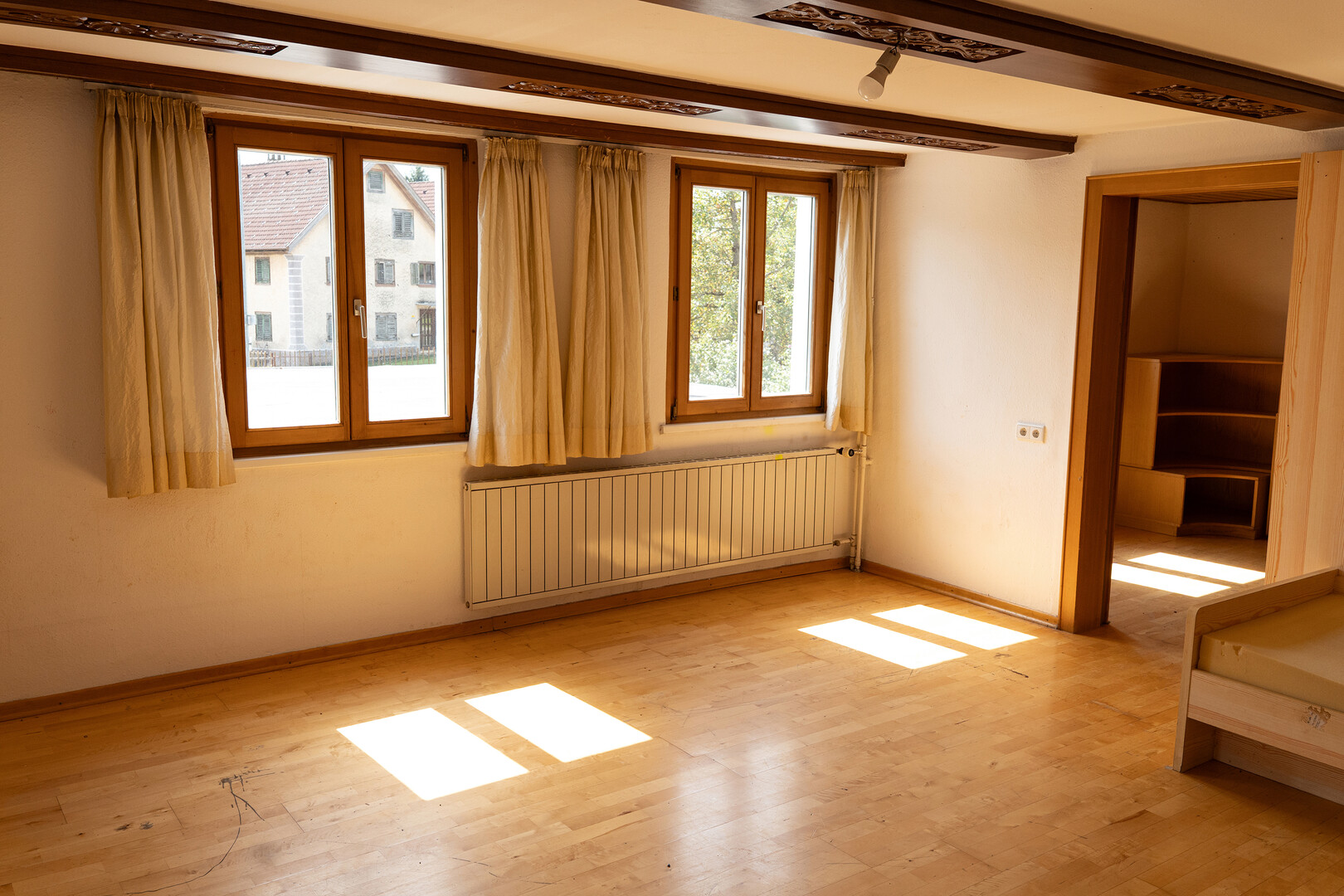 - Bestehende Geschäftsfläche: Im vorderen Bereich befindet sich die beliebte Bäckerei Mangold, die als langjähriger Mieter großes Interesse an einer weiteren Nutzung hat. Damit ist bereits eine attraktive Einnahmequelle gesichert. Gleichzeitig eröffnet die Fläche die Möglichkeit, eigene Geschäftsideen oder Büronutzung umzusetzen. Die ehemalige Backstube im Erdgeschoss eröffnet vielfältige Möglichkeiten – perfekt als Hobbyraum, Atelier oder Kreativbereich.