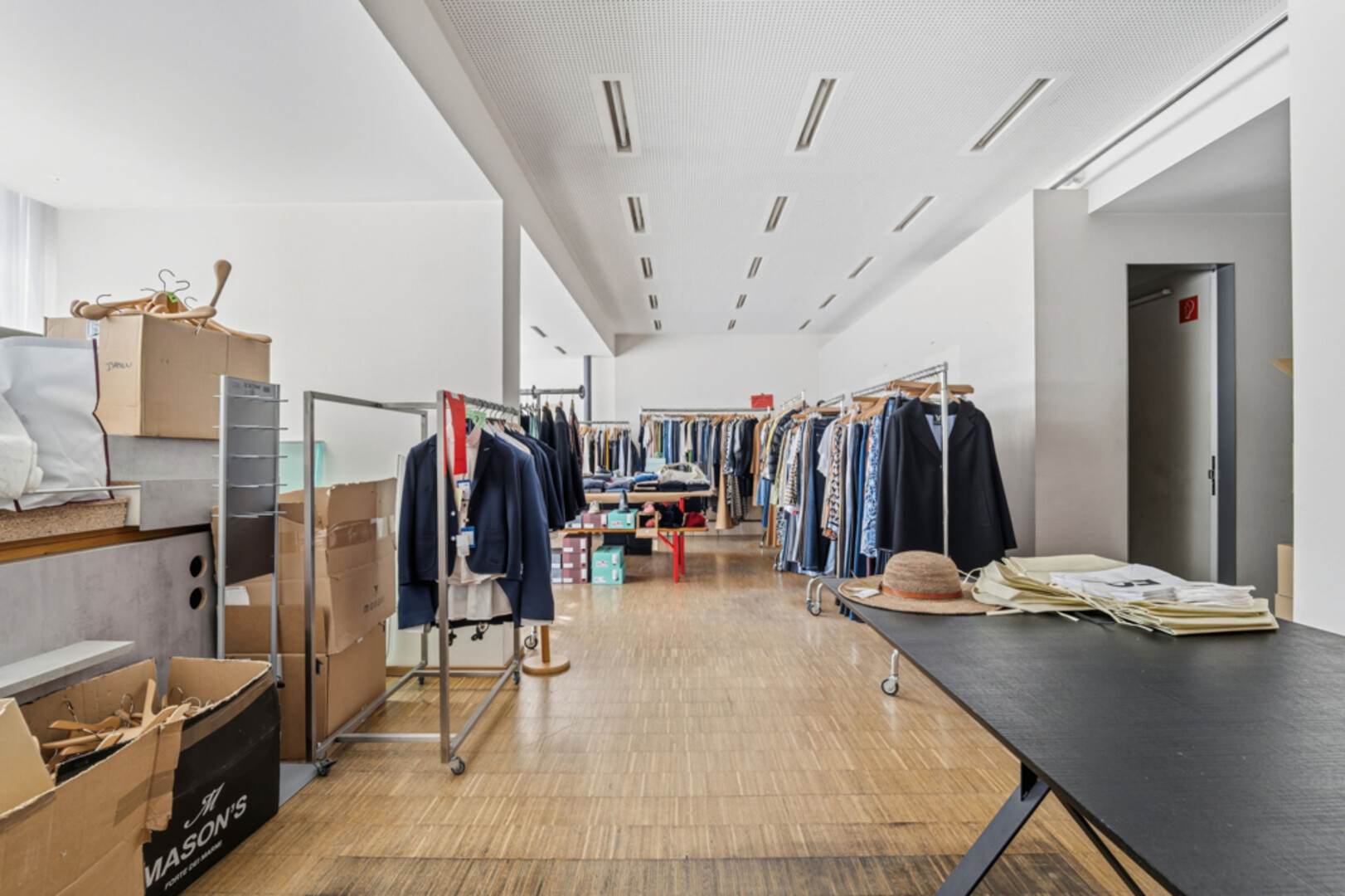 Das Haus wurde in solider Bauweise errichtet und bietet eine Gewerbefläche im Erdgeschoss mit großer Schaufensterfront zur Straße hin – ideal für Verkauf, Büro oder Dienstleistung.