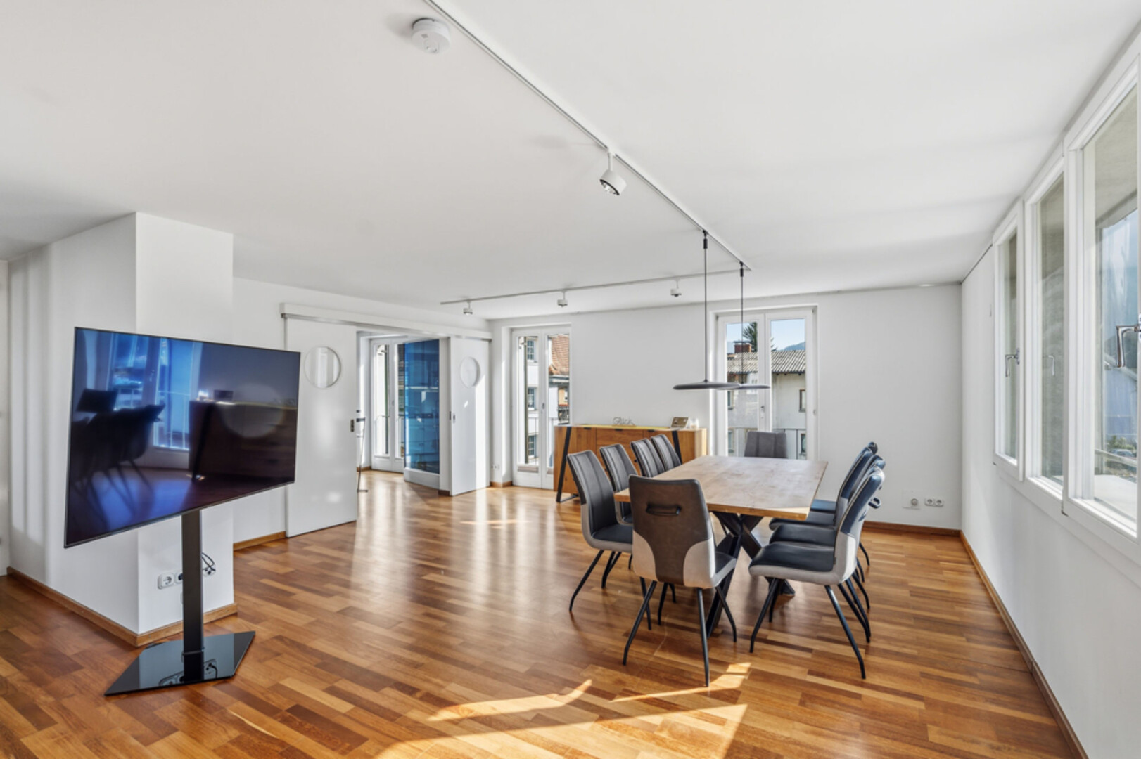Dieses attraktive Wohn- und Geschäftshaus befindet sich in zentraler Lage von Bludenz, in der Wichnerstraße 44. Die Liegenschaft überzeugt durch ihre vielseitige Nutzungsmöglichkeit und gelungene Kombination aus Gewerbefläche im Erdgeschoss und zwei Wohneinheiten in den oberen Geschossen, wobei sich eine der Einheiten über das gesamte 2. Obergeschoss bis ins Dachgeschoss erstreckt und besonders großzügig geschnitten ist. Beide Wohnungen verfügen über eine Terrasse und bieten gesamt etwa 12 Schlafplätze, was sie auch für touristische Nutzung oder Vermietung interessant macht.