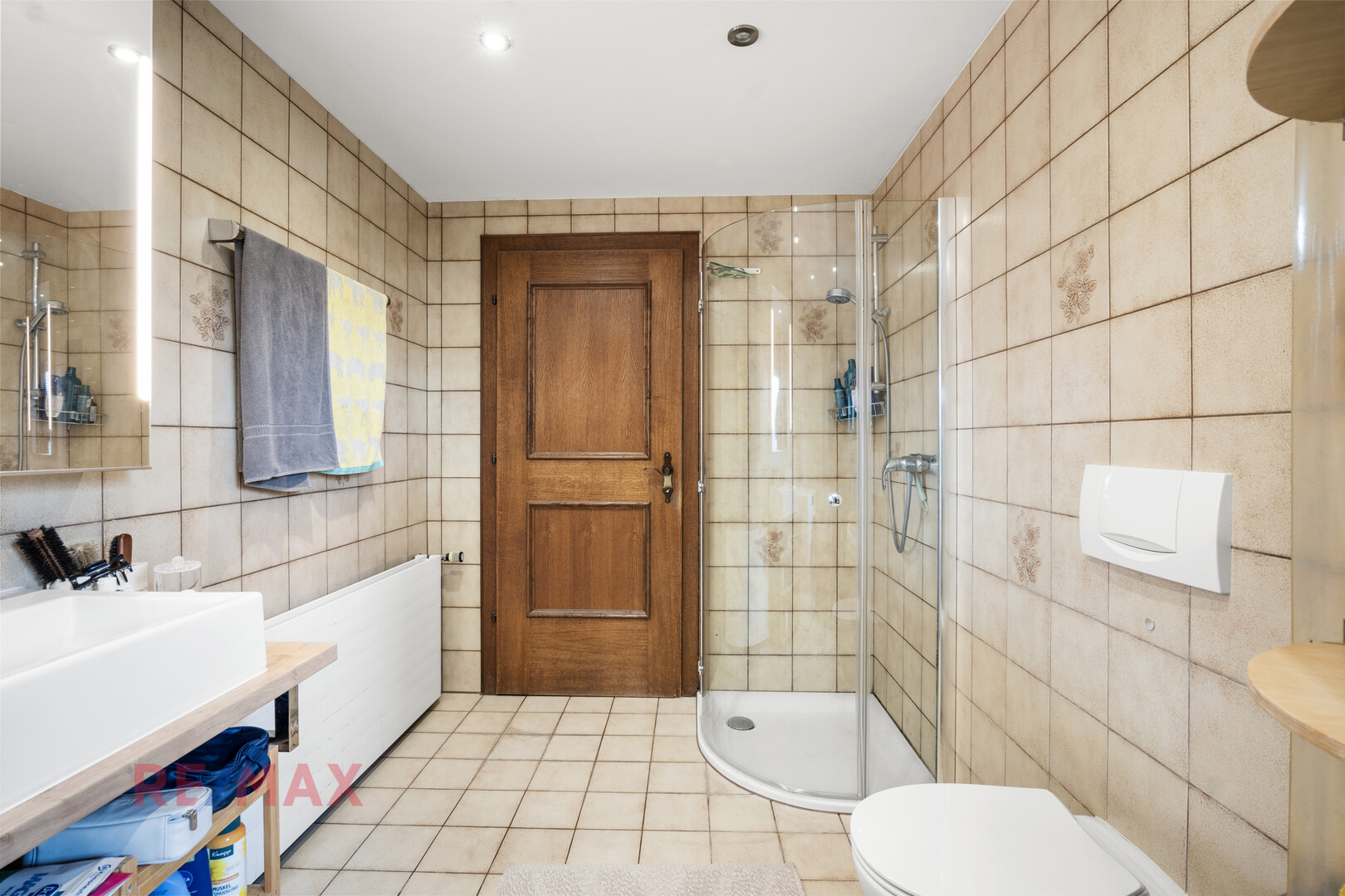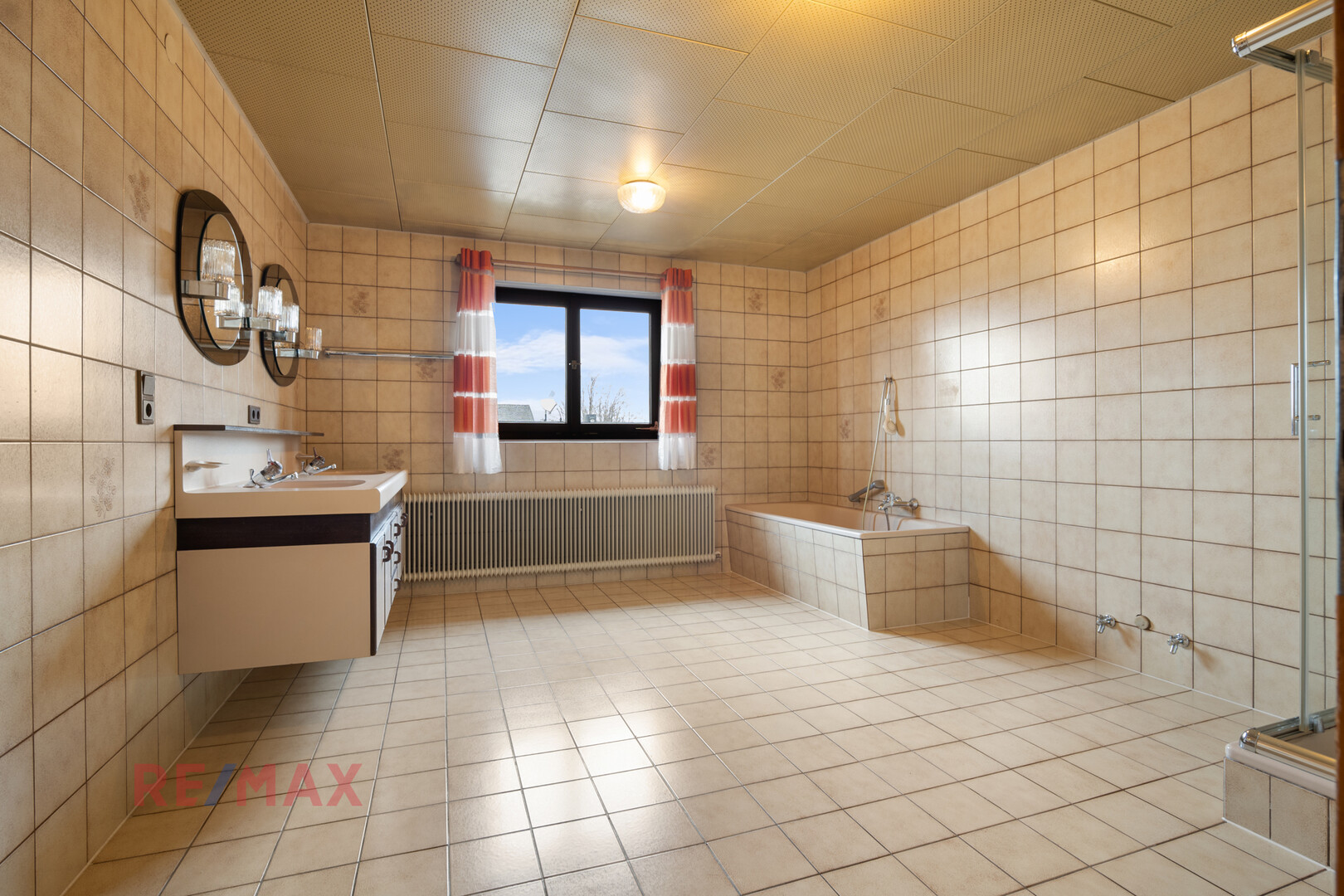 ** Großzügige Badezimmer mit Dusche, Badewanne und Fenster