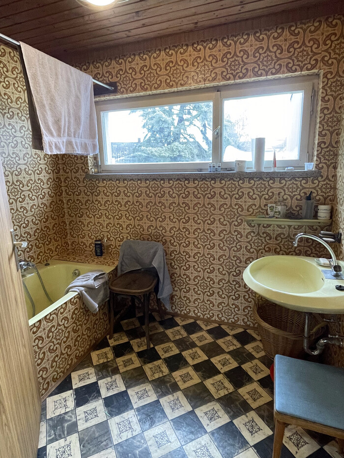 Das Haus stammt aus den 1970er Jahren und ist sanierungsbedürftig, überzeugt aber durch solide Substanz, großzügige Flächen und viel Gestaltungsspielraum.