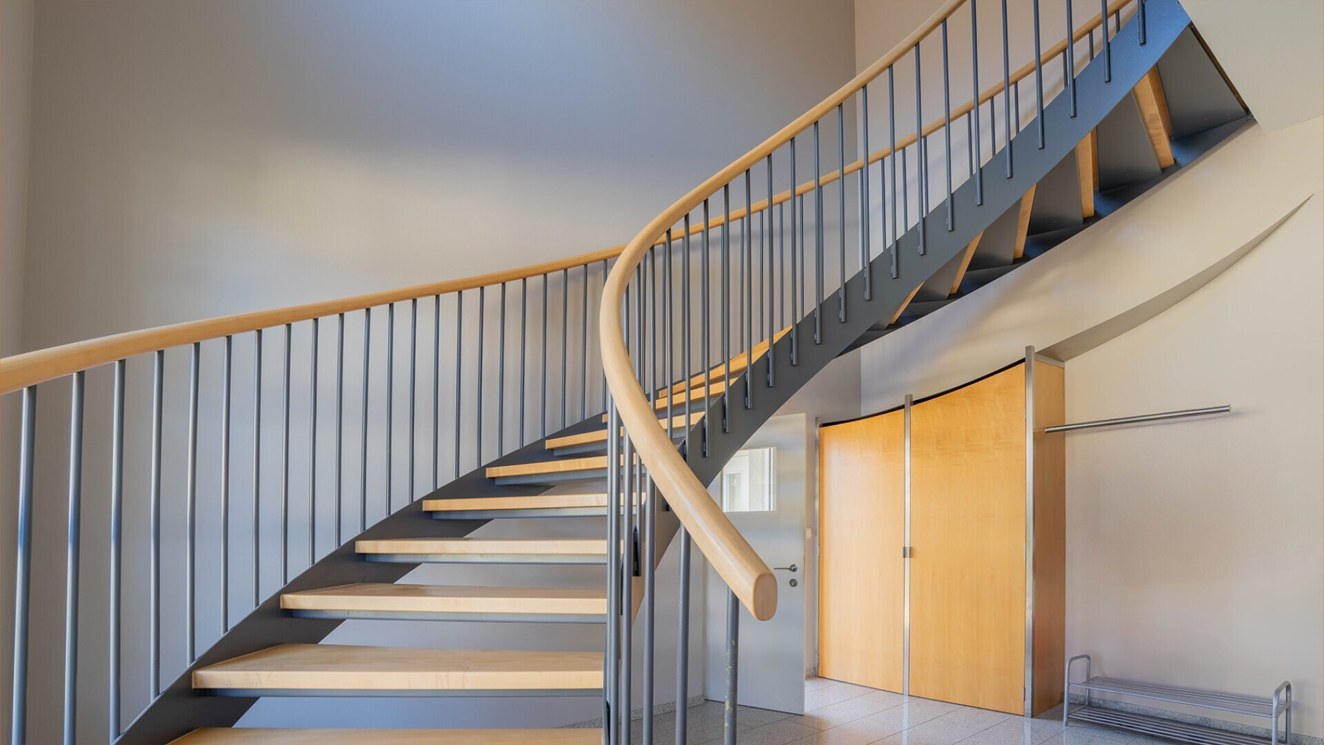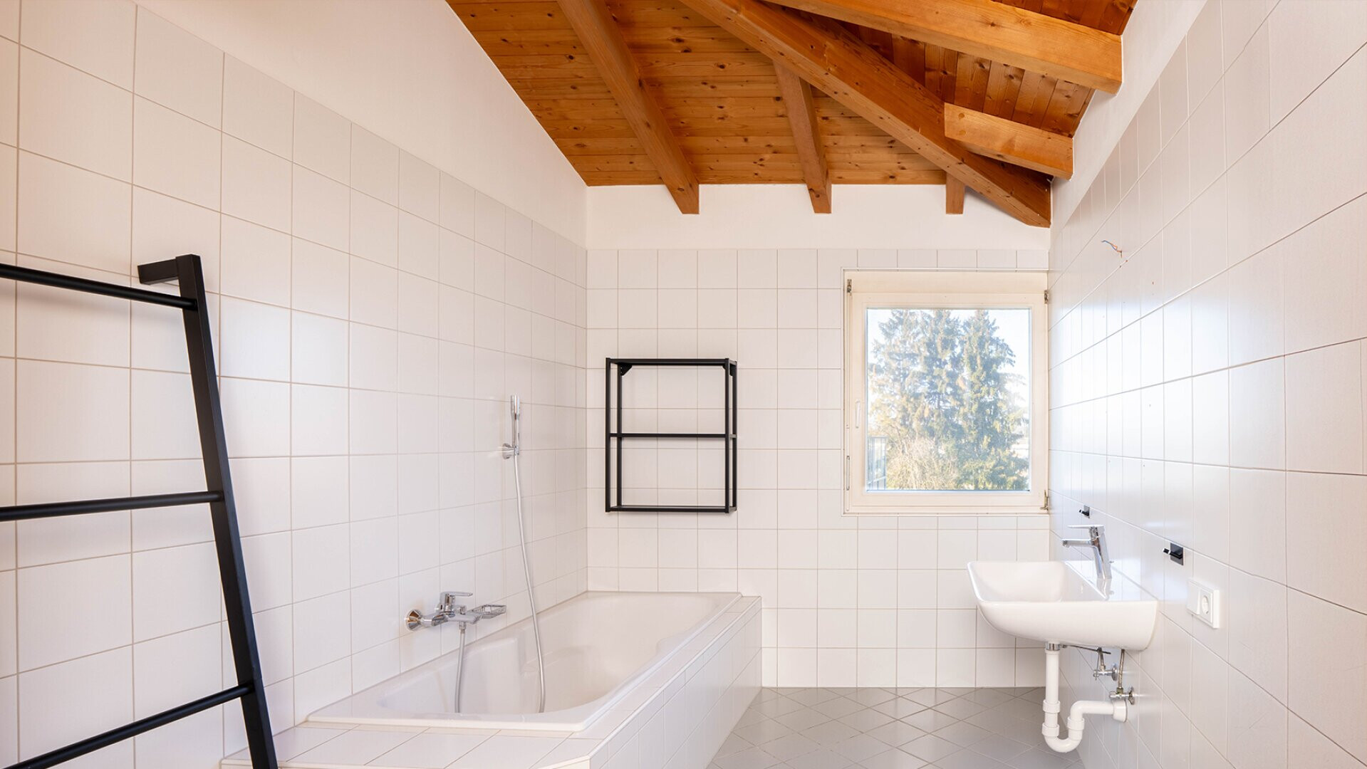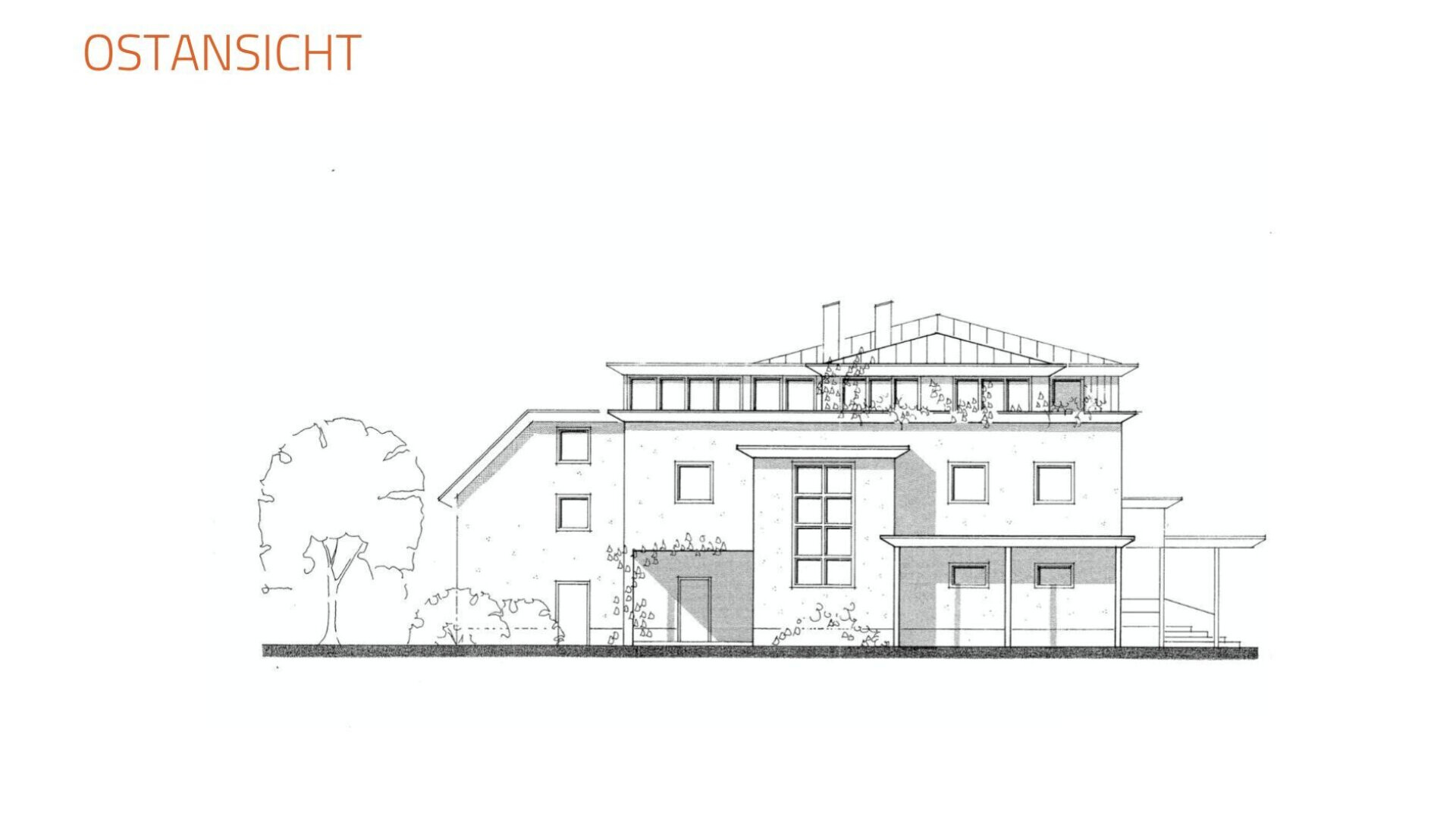 Die größte Wohnung (W2) erstreckt sich über drei Etagen. Der Eingang, das Stiegenhaus sowie der Zugang zum großzügigen Garten befinden sich im Erdgeschoss, während sich der Wohnbereich über das Obergeschoss sowie das Dachgeschoss verteilt.