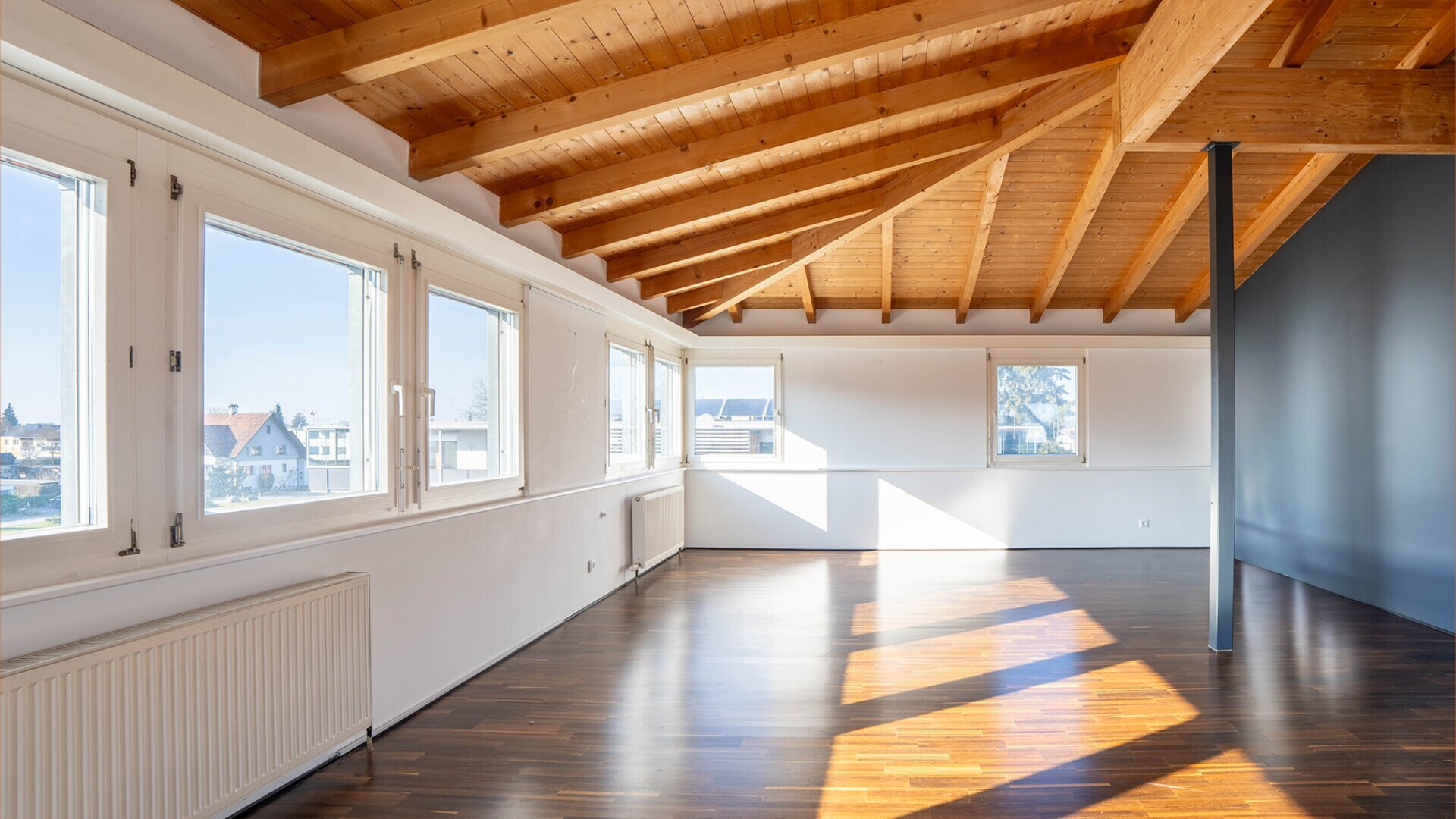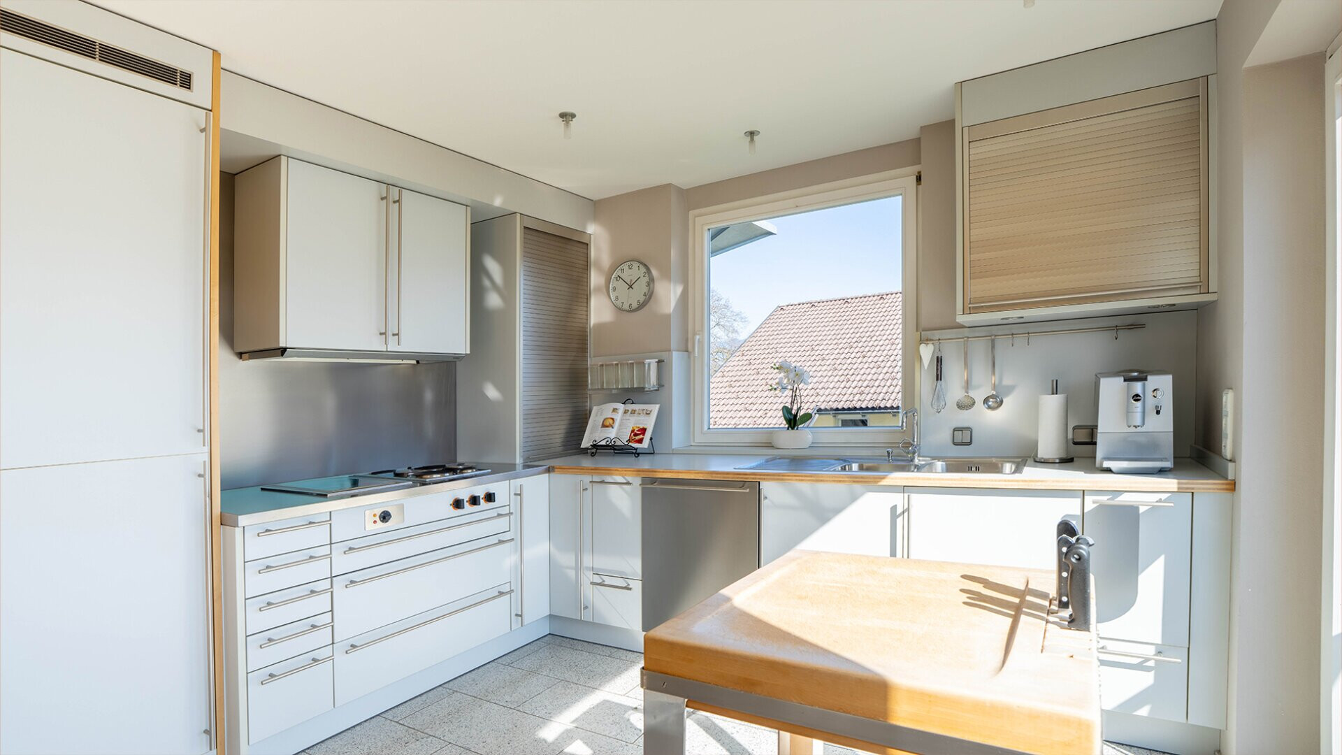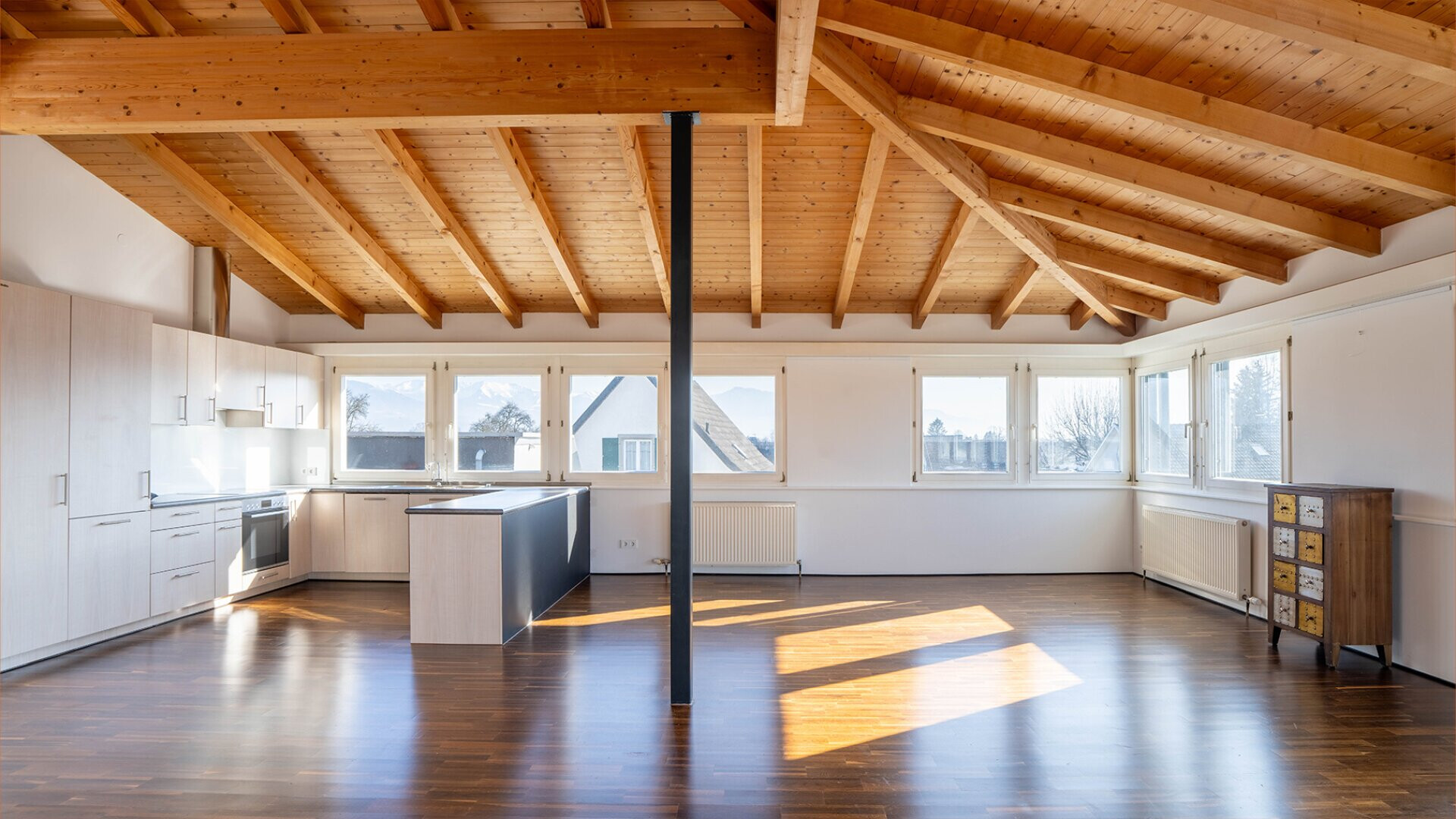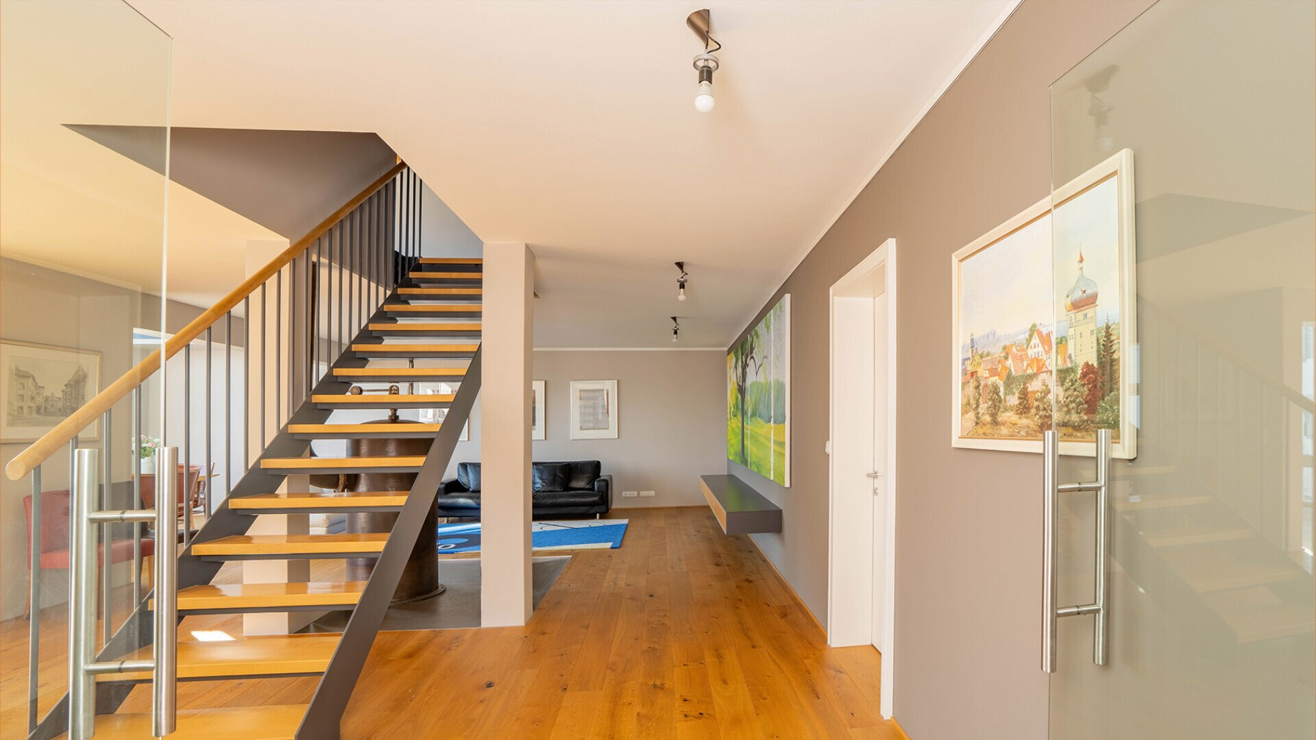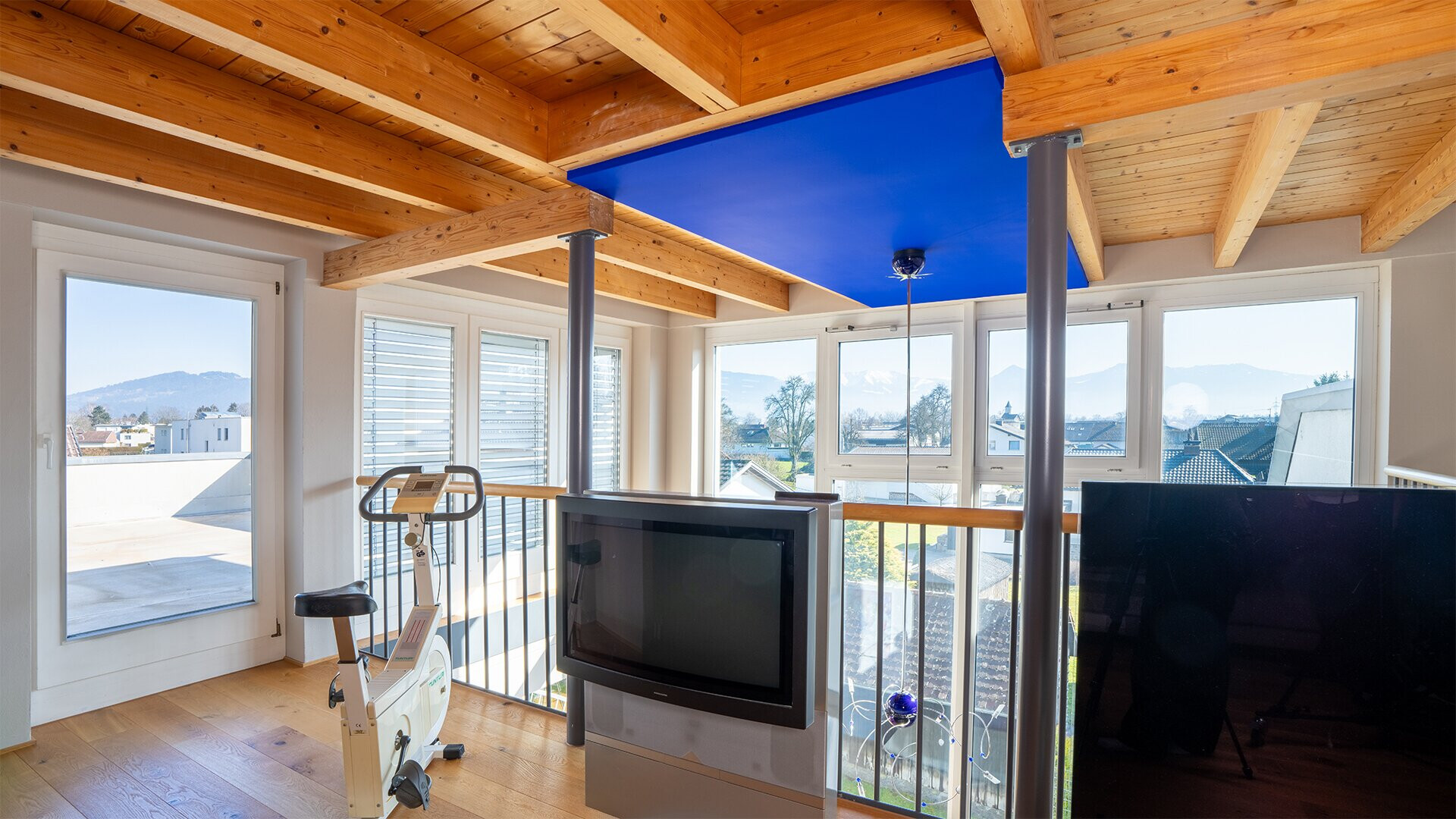 Die Galerie im Dachgeschoss bietet zudem ausreichend Raum für einen privaten Fitnessbereich. Die Terrasse lässt sich zu einer wahren Wohlfühlterrasse umgestalten um auch im Dachgeschoss eine gemütliche Möglichkeit im Freien zu ermöglichen. Im lichtdurchfluteten Wohnzimmer sorgt ein speziell geschmiedeter Ofen für gemütliches Ambiente. Der große Garten mit eigenem Gartenraum samt Küche und Dusche lädt zu entspannten Grillabenden mit Familie und Freunden ein.