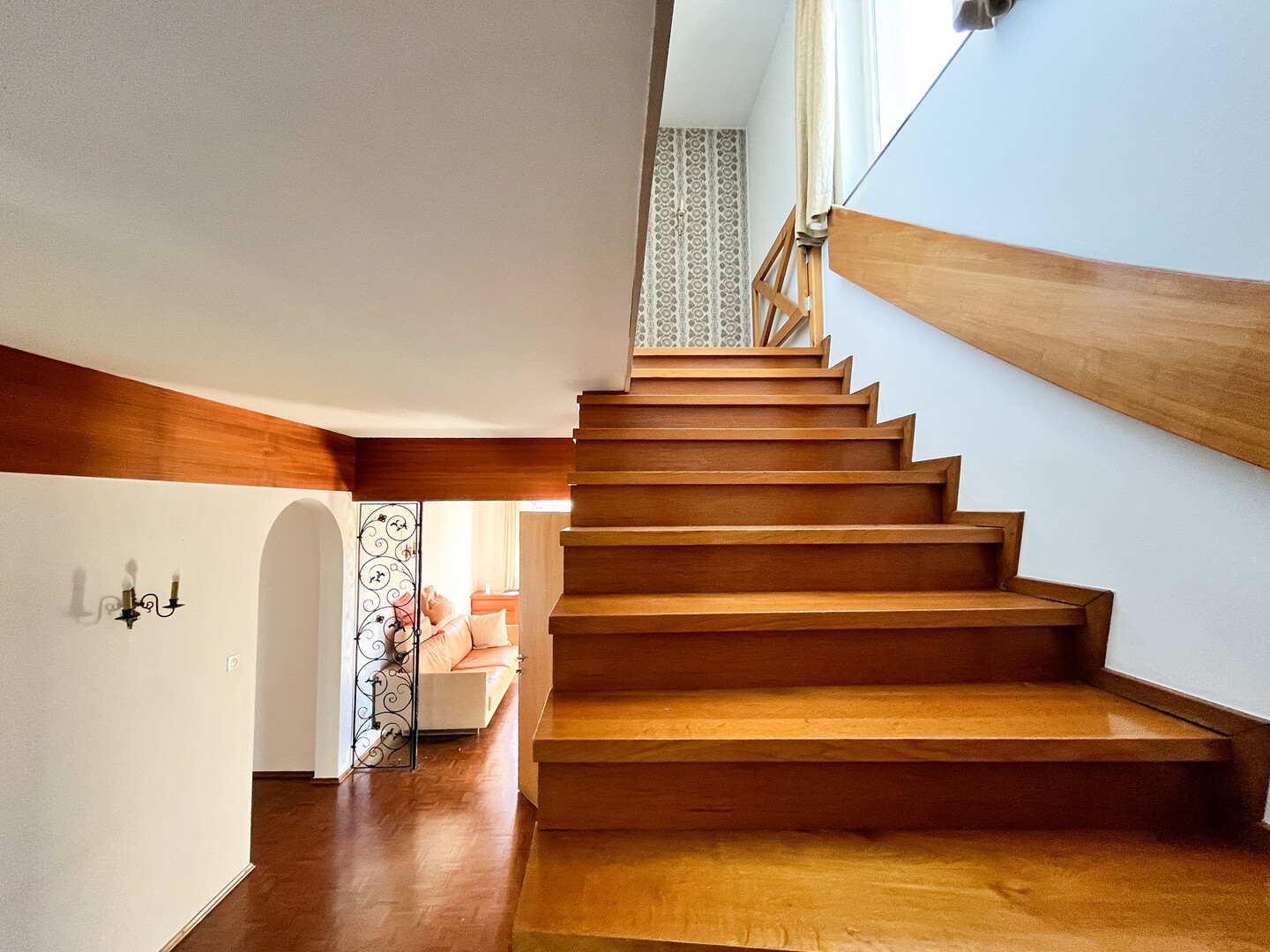 Das voll unterkellerte Gebäude erstreckt sich über Erdgeschoss, 1. und 2. Obergeschoss sowie Dachboden und bietet eine beeindruckende Wohnfläche von ca. 300 m². Hier trifft architektonischer Charme auf jede Menge Entwicklungsspielraum – ob für eine stilvolle Sanierung, eine moderne Nutzung oder ein ganz neues Kapitel.