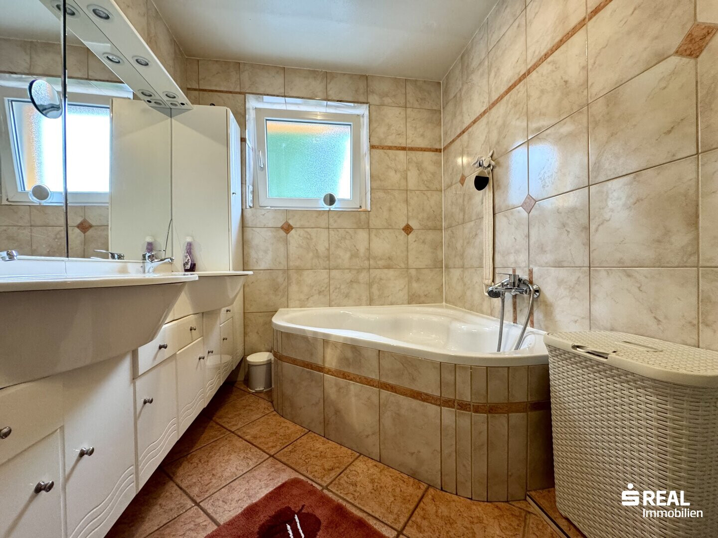 Bad mit: Badewanne, Dusche, Fenster