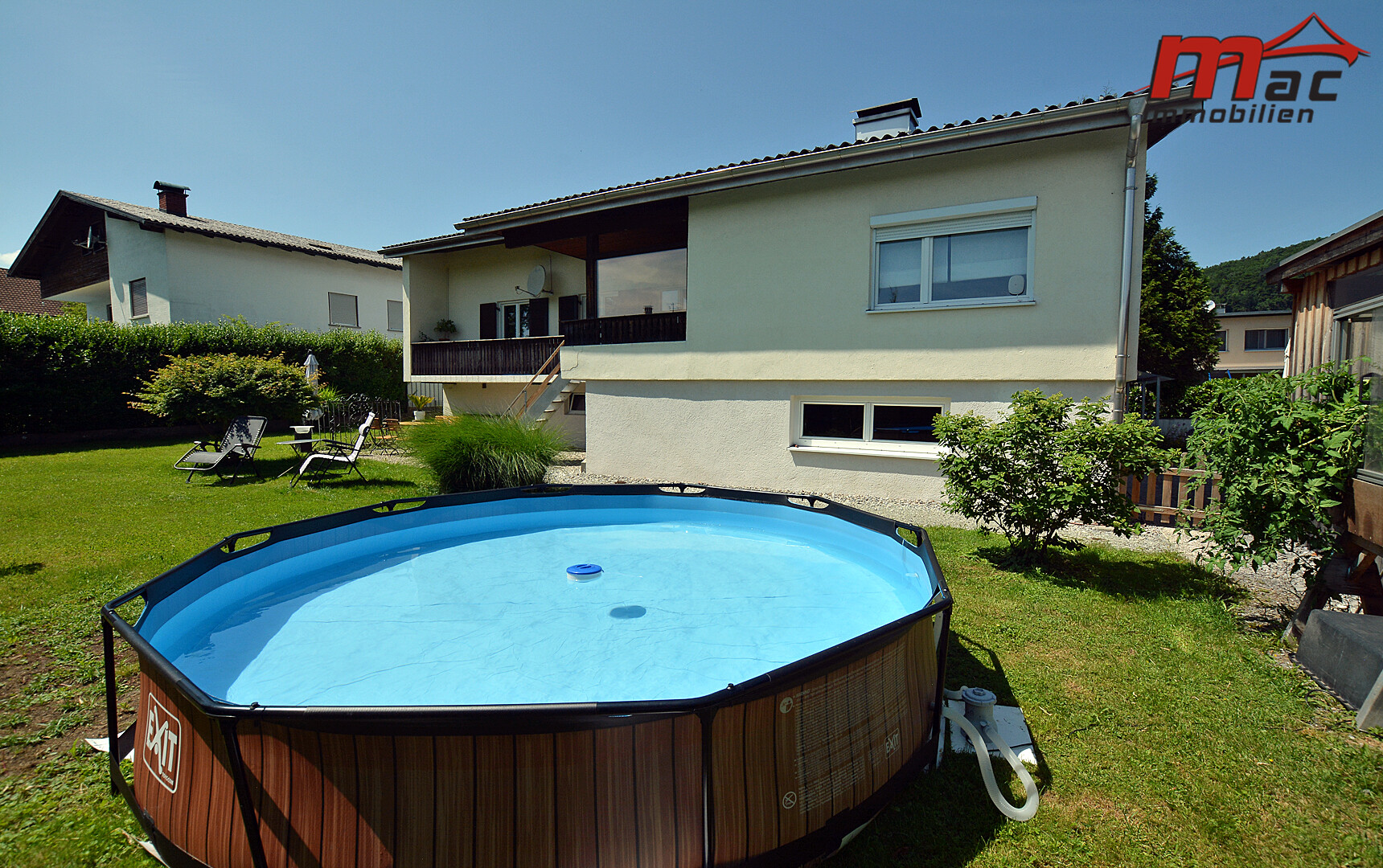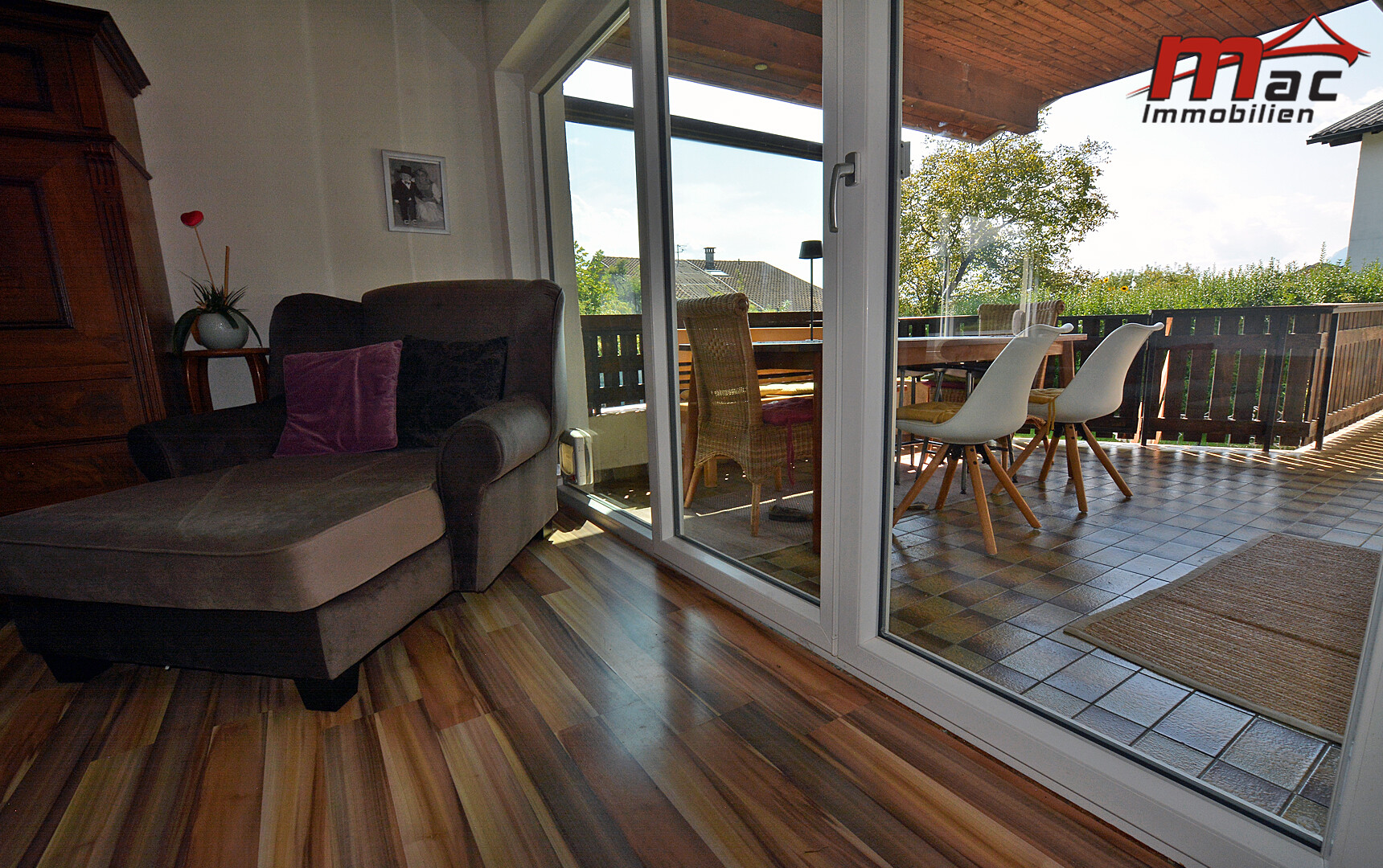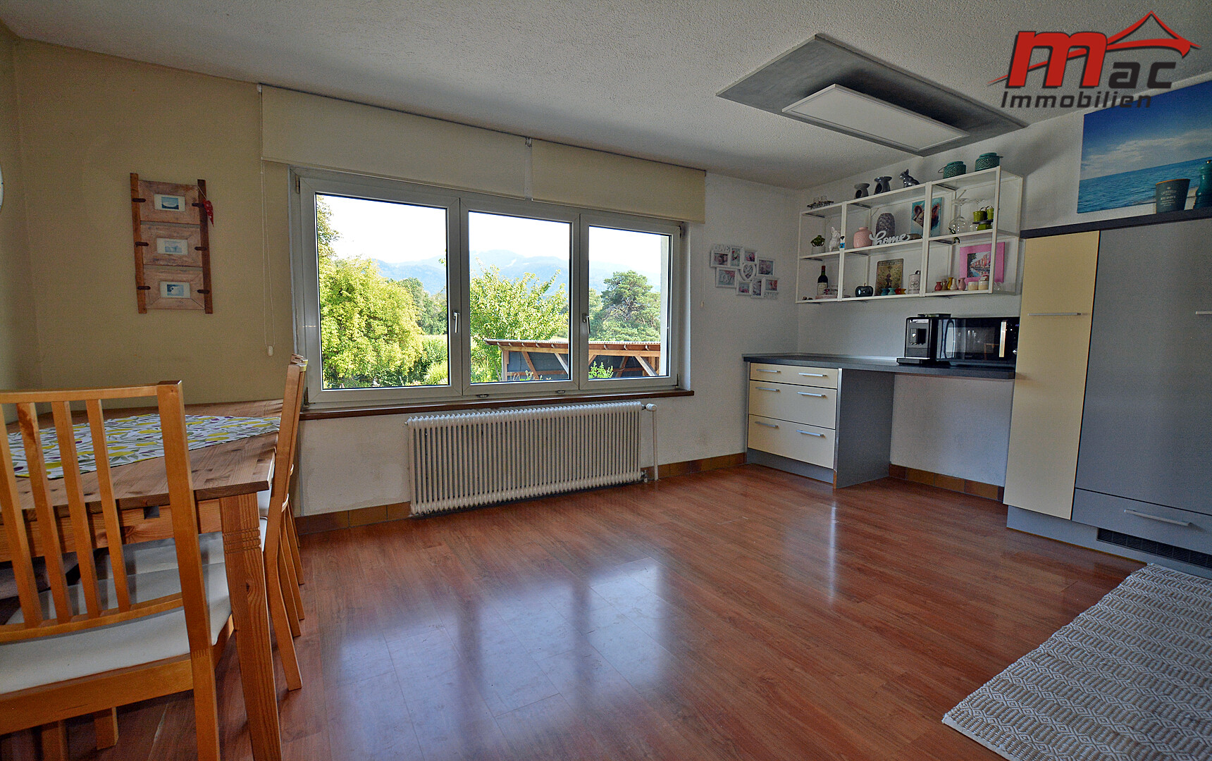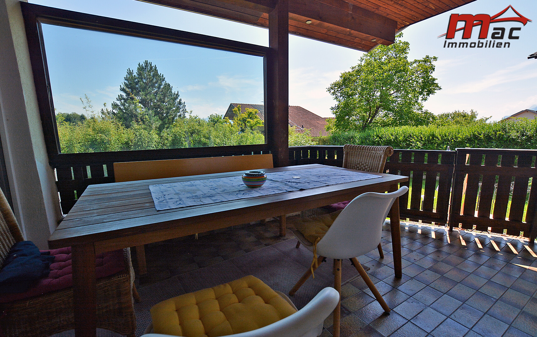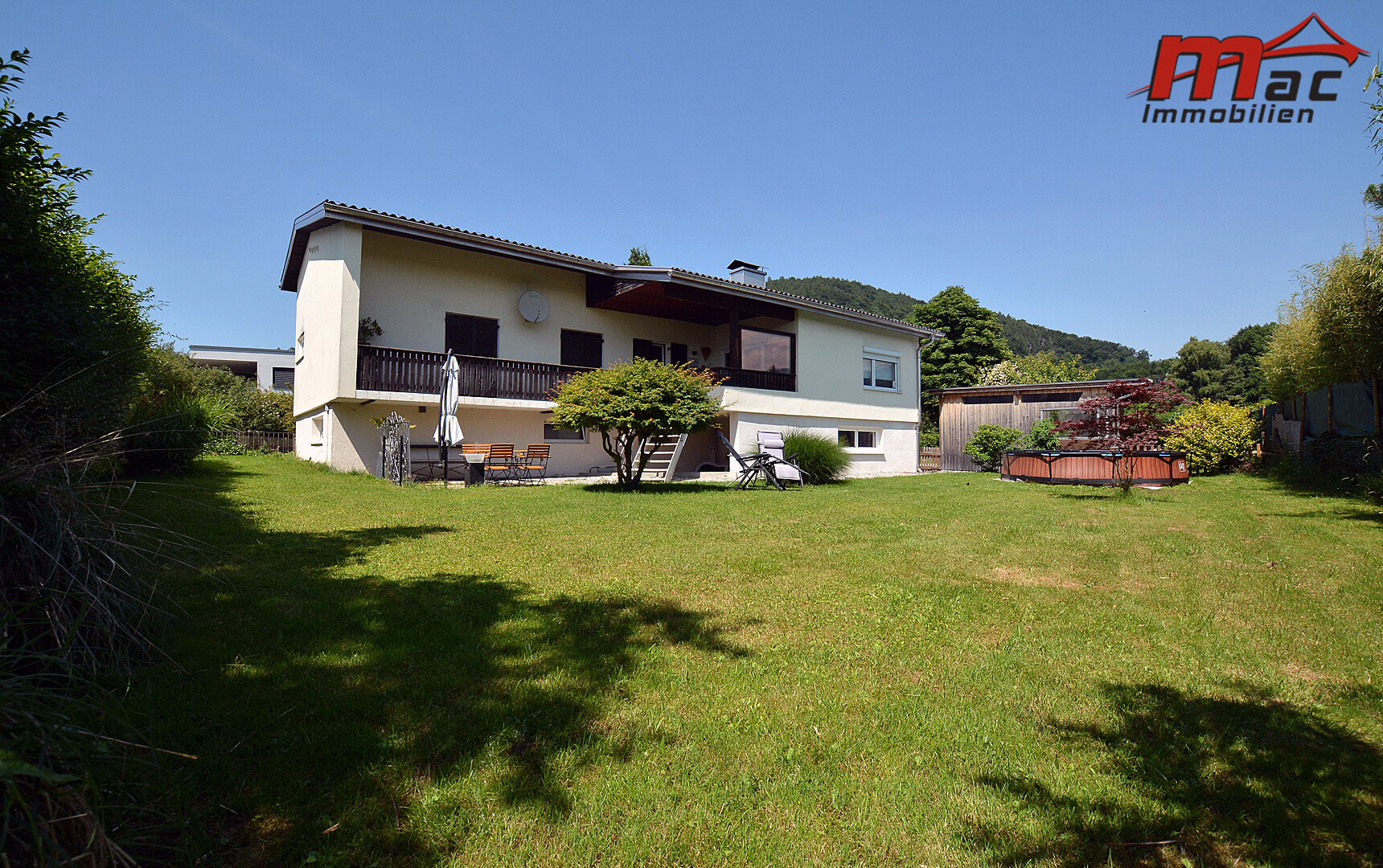 Es verfügt über ein 907 m² großes Grundstück in einer absoluten Erholungslage mit traumhafter, unverbaubarer Fernsicht.