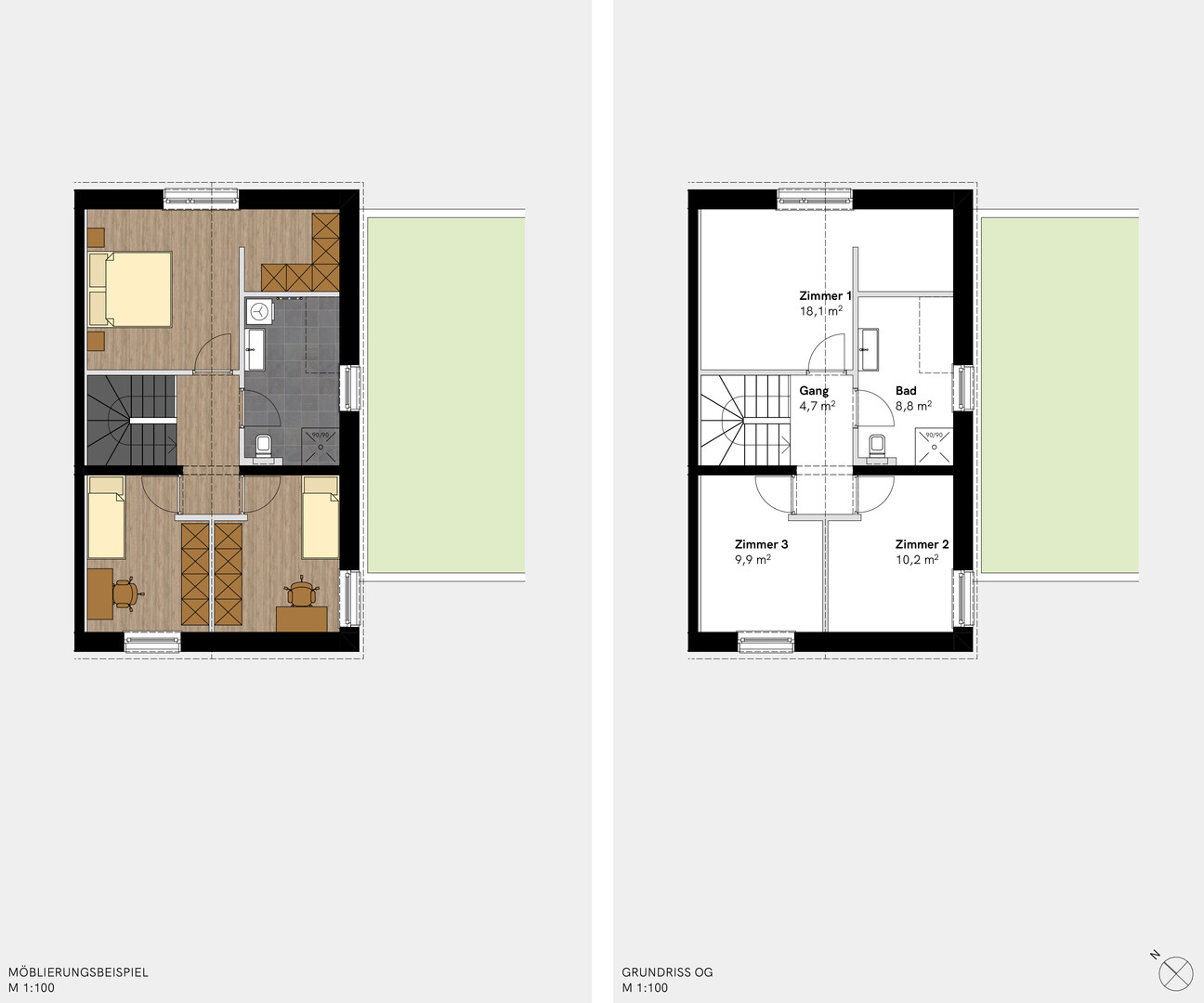 Der Wohnpark umfasst fünf Baukörper mit insgesamt 52 Wohneinheiten, drei Reihenhäuser sowie eine Gewerbeeinheit. Die 2- bis 4-Zimmer-Wohnungen mit Wohnflächen von ca. 40 bis 105 m² verfügen über Balkone oder Gartenanteile. Vom Micro-Apartment bis zum großzügigen Reihenhaus finden hier Singles, Paare und Familien das passende Zuhause. Ein großzügiger Gemeinschaftsgarten bildet das Herz der Anlage und lädt zu einem lebendigen Miteinander ein.