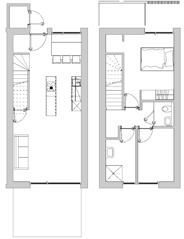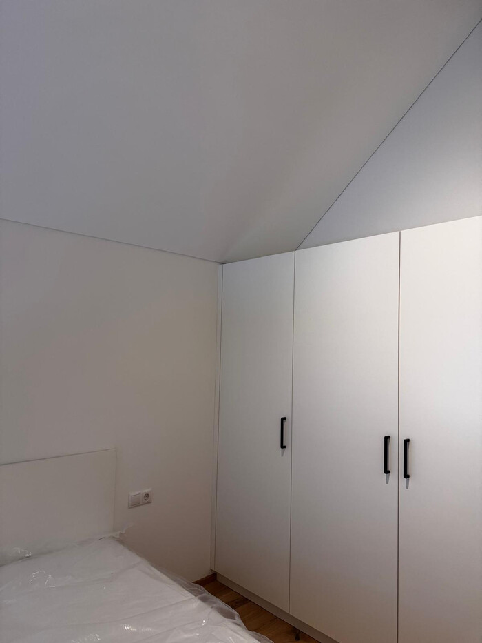 Im Obergeschoss schaffen überhohe Decken ein großzügiges Wohnklima. Dort befindet sich ein Schlafzimmer mit Platz für einen großen Kleiderschrank und separatem Stauraum. Ein weiteres Zimmer kann als Home-Office, Gästezimmer oder Sportzimmer genutzt werden je nach Lebensstil und Bedarf. Das moderne Bad ist mit einer Dusche ausgestattet, das Gäste-WC ist separat gehalten.