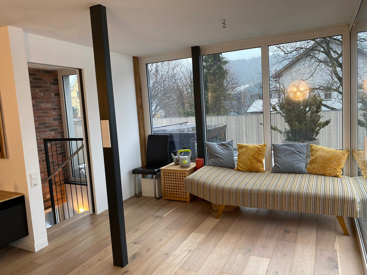 Das Wunderschöne Eckreihenhaus in absoluter Seenähe bietet alles, wovon Familien mit Kindern oder anspruchsvolle Paare träumen können. Im ganzen Haus finden sich schöne Details mit einem spannenden Materialmix und gut durchdachten Lösungen. Diese geben dem Haus Charakter und Charme für ein absolutes Wohlfühlgefühl. Vier Schlafzimmer, ein Badezimmer (Badewanne, Regendusche und WC), ein zusätzliches WC im EG und der großzügige Wohn-Essbereich mit offener Küche bietet ausreichen Platz für Familie und Freunde. Durch die räumliche Trennungen (2 Stockwerke) wird auch die Privatsphäre der einzelnen Familienmitglieder optimal gewährleistet. Eines der Highlights ist das 20m2 große Studio im 2. OG inkl. der 34m2 großen Dachterasse mit Whirlpool und einer unverbaubaren Sicht zum Pfänder und Teile des Bodensees. Es findet sich auch genügend Platz und ausreichend Ruhe für die Arbeit von Zuhause aus. Die Ausrichtung Süd Süd West zusammen mit den großen Verglasungen garantieren lichtdurchflutete Räume und eine wunderbare Verbindung zur Natur.