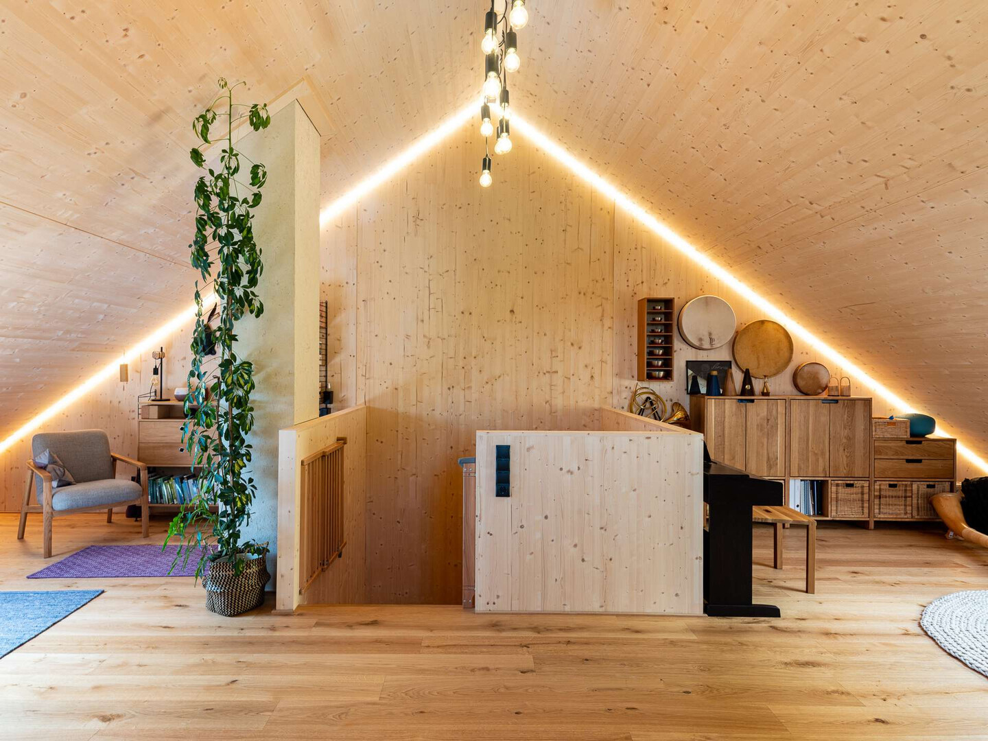 Natürlich leben auf drei Ebenen: Mit rund 158 m² Wohnfläche, einem großzügigen Dachstudio mit Panoramablick und einem großen Lagerraum bietet dieses Haus viel Platz zum Leben, Arbeiten und Entspannen. Der moderne Vollholzbau sorgt für ein angenehmes Raumklima – wohngesund und energieeffizient.