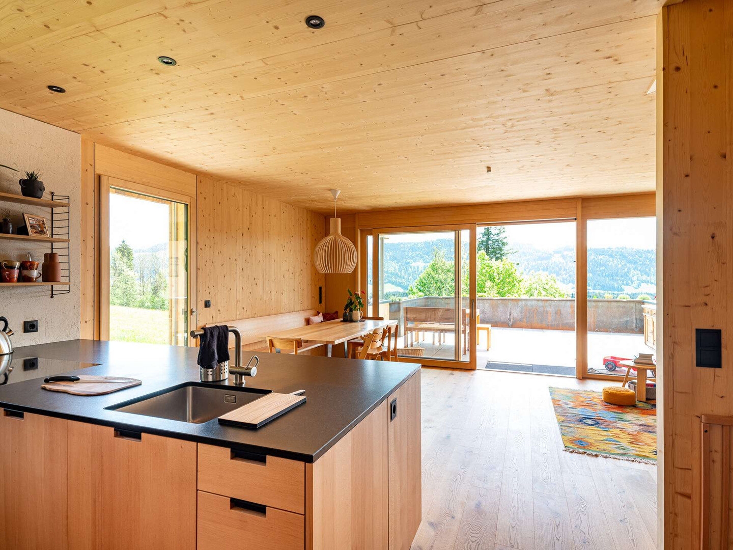 Leben im Grünen: Das Haus öffnet sich nach Süden und bietet eine herrliche 28 m² große Terrasse sowie einen ca. 390 m² großen Garten mit Gemüsebeeten – ideal für Hobbygärtner:innen oder Familien. Der Blick auf das beeindruckende Bregenzerwälder Bergpanorama macht jede Jahreszeit zum Erlebnis.